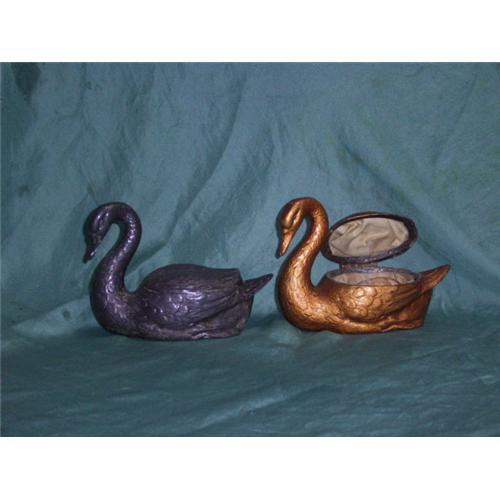 <tr><td>Title:2 vintage metal Swan boxes with Eggs in it.</td></tr>