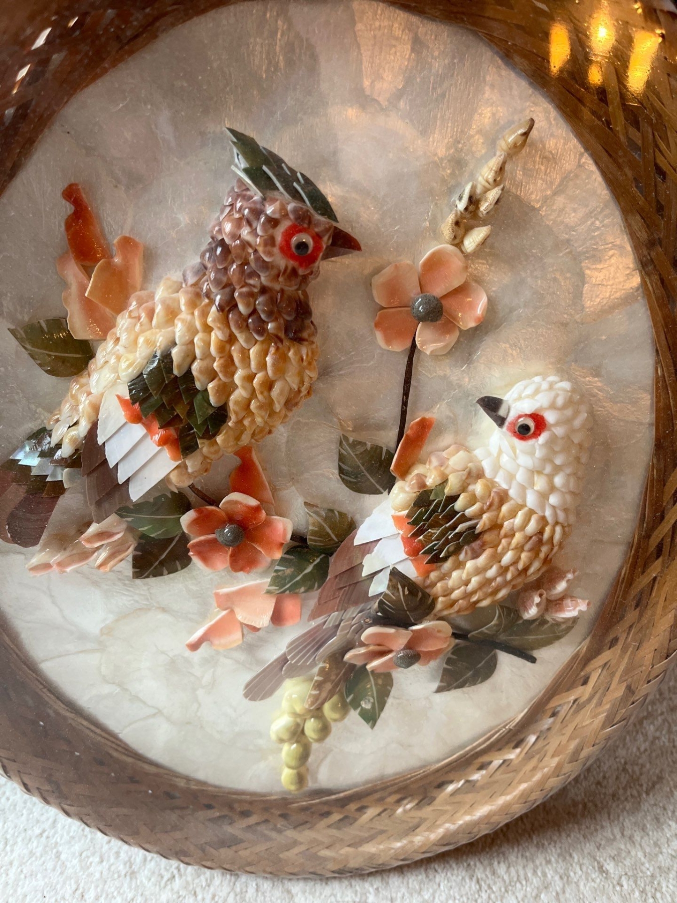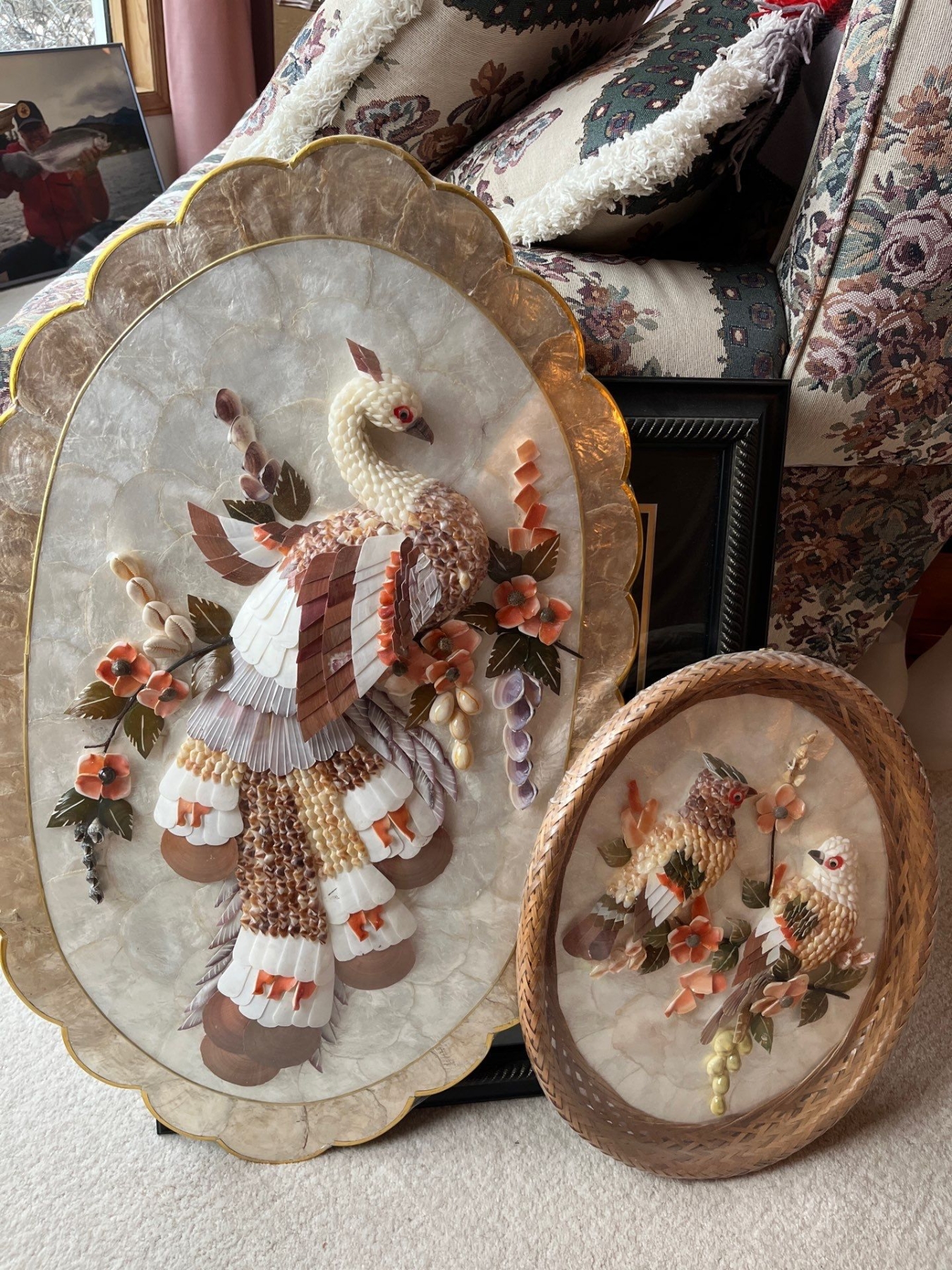 2 vintage piece of Capiz Asian inspired Shell Art very nicely made sealed in plastic wrap for protection