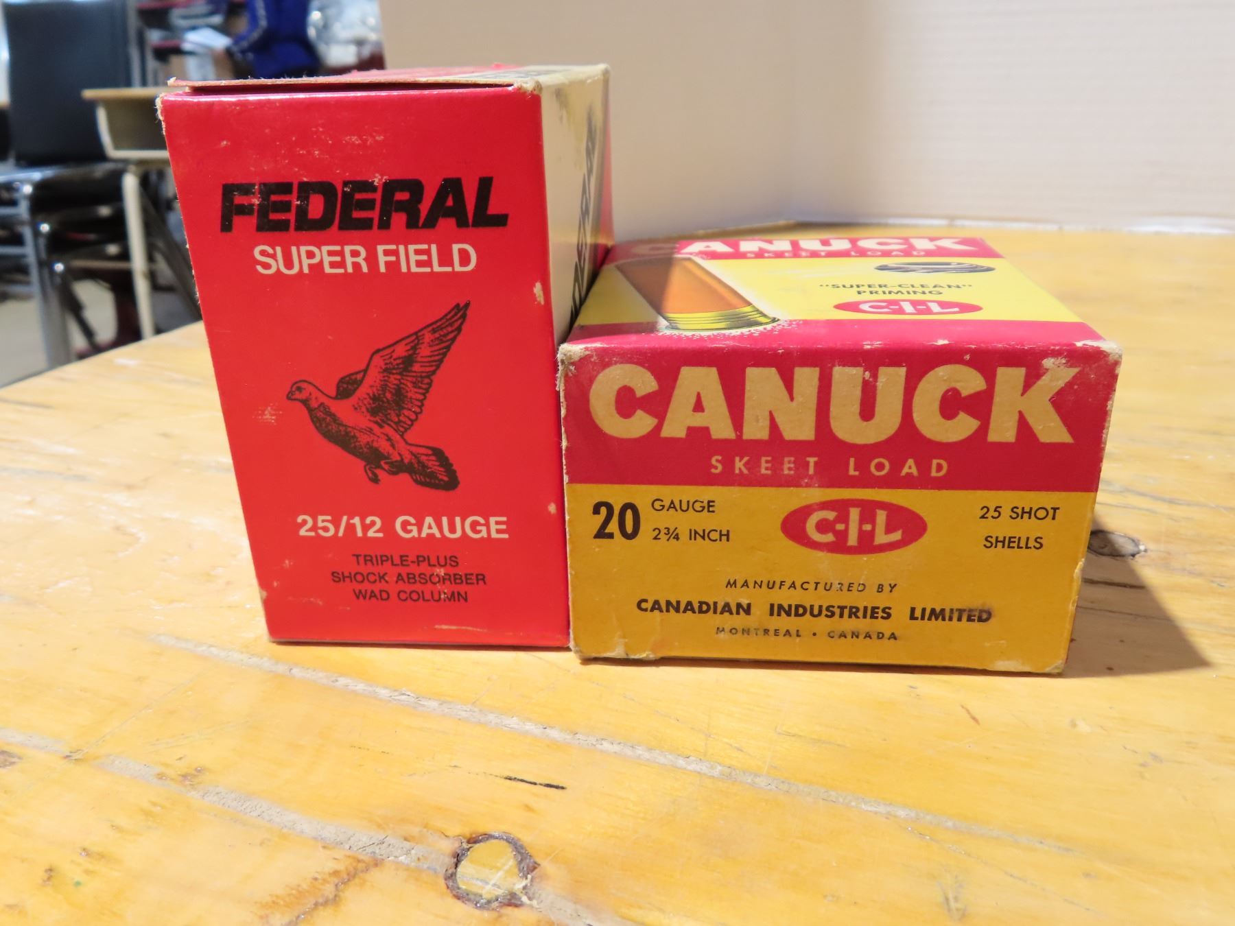 2 vintage shell boxes NOS 12and 20 gauge- full