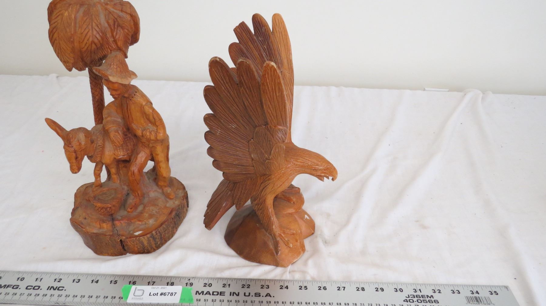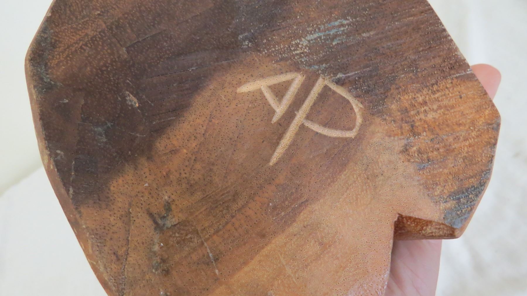 2 wood carvings (have damage) one signed AP