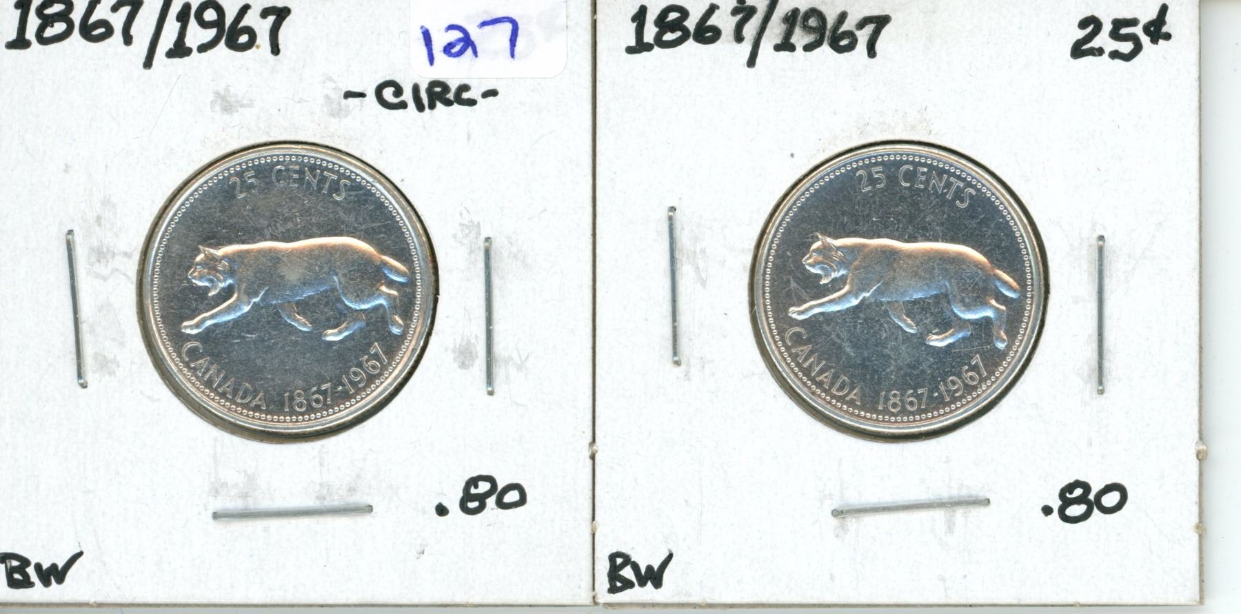 2 x 1967 Canada 25 cents