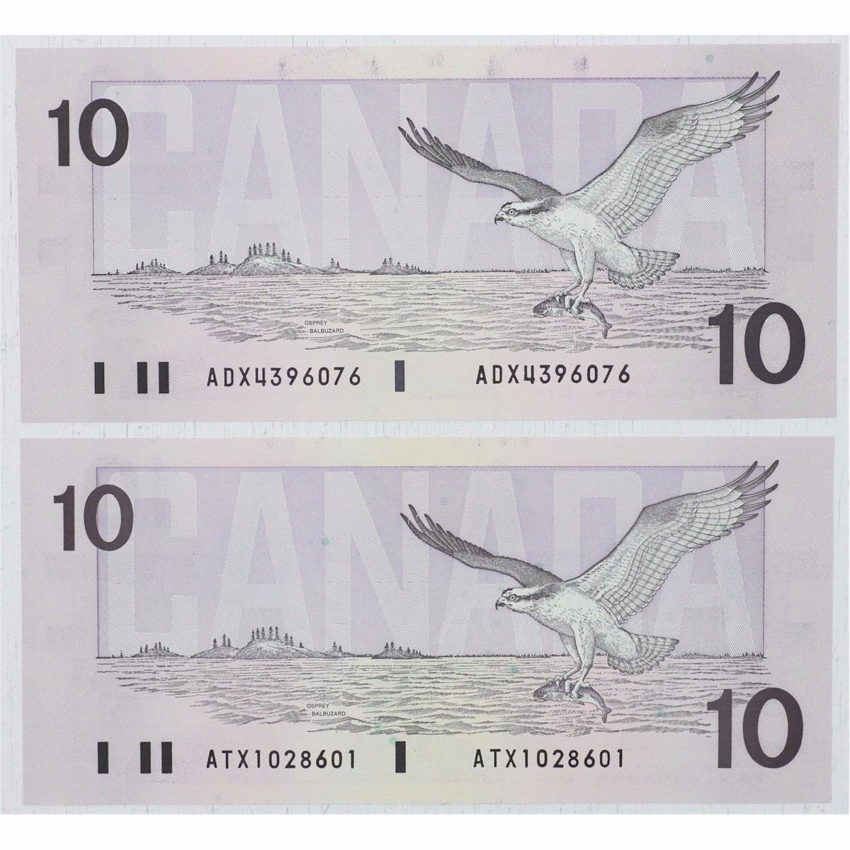 2 x 1989 $10.00 Replacement notes in UNC. You will receive an ADX with a Thiessen-Crow signature (BC-57aA), and an ATX with a Thiessen-Crow signature (BC-57aA).
