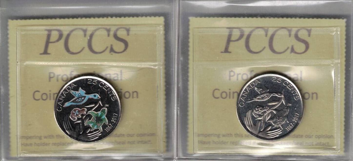 2 x 2017 25¢ Canada 150; Green Future; Colorised & Non Colorised PCCS MS65