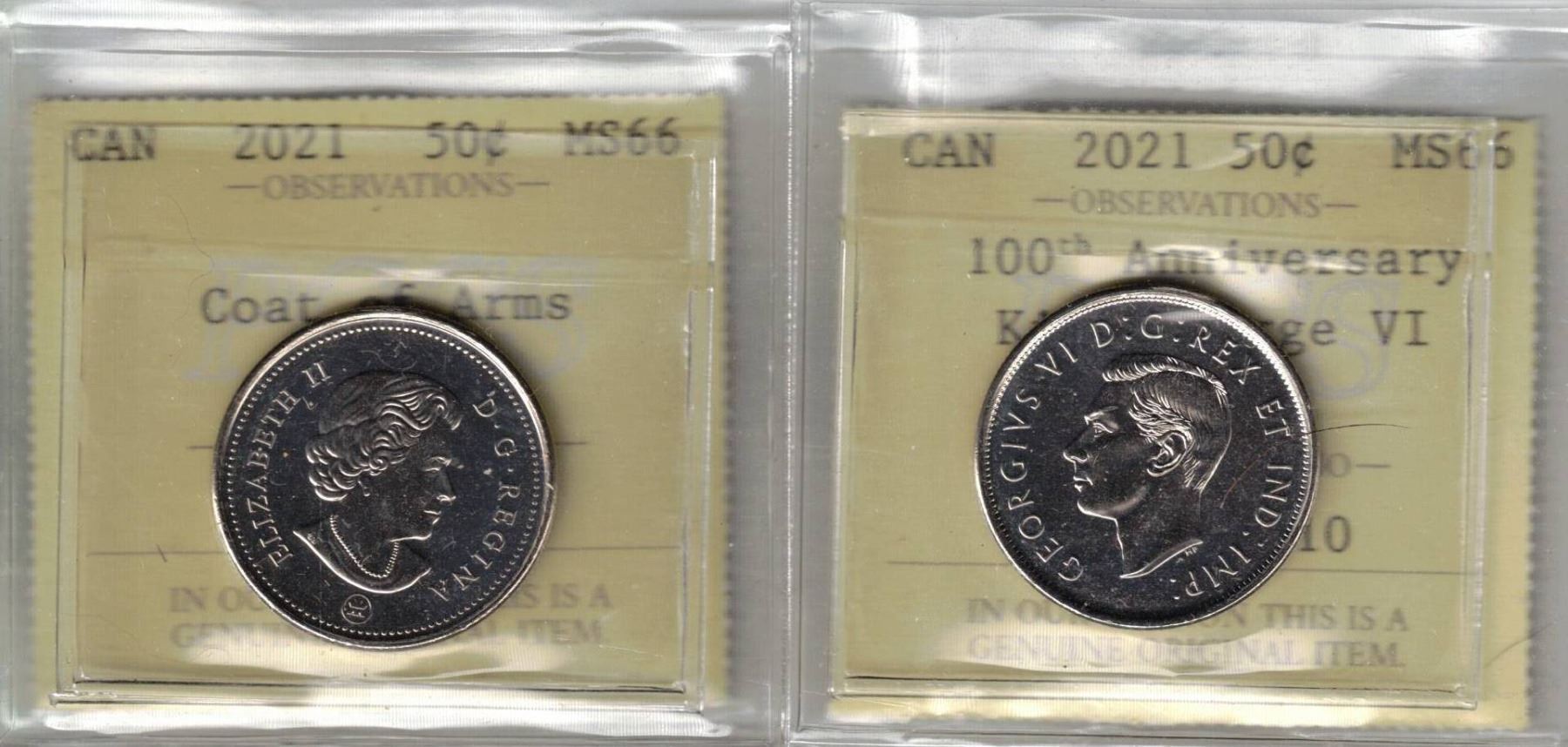 2 x 2021 50¢ , Regular & 100th Anniversary MS66, PCCS (Professional Coin Certification System)