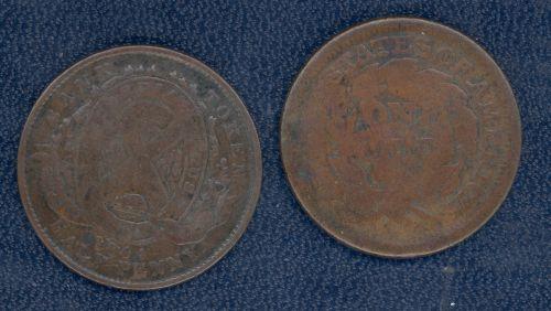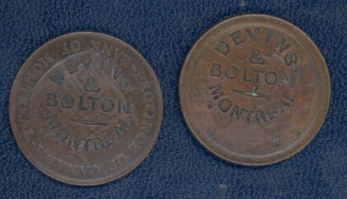 Breton 569a, Devins & Bolton, one is struck on a PC-1B, the second on a US large cent 1851.