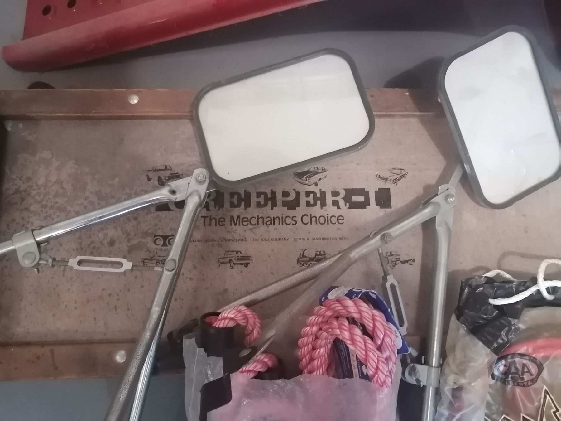 2 x Car Ramps, Mechanics' Creeper, Rearview Mirrors, Booster Cables, and Tow Rope