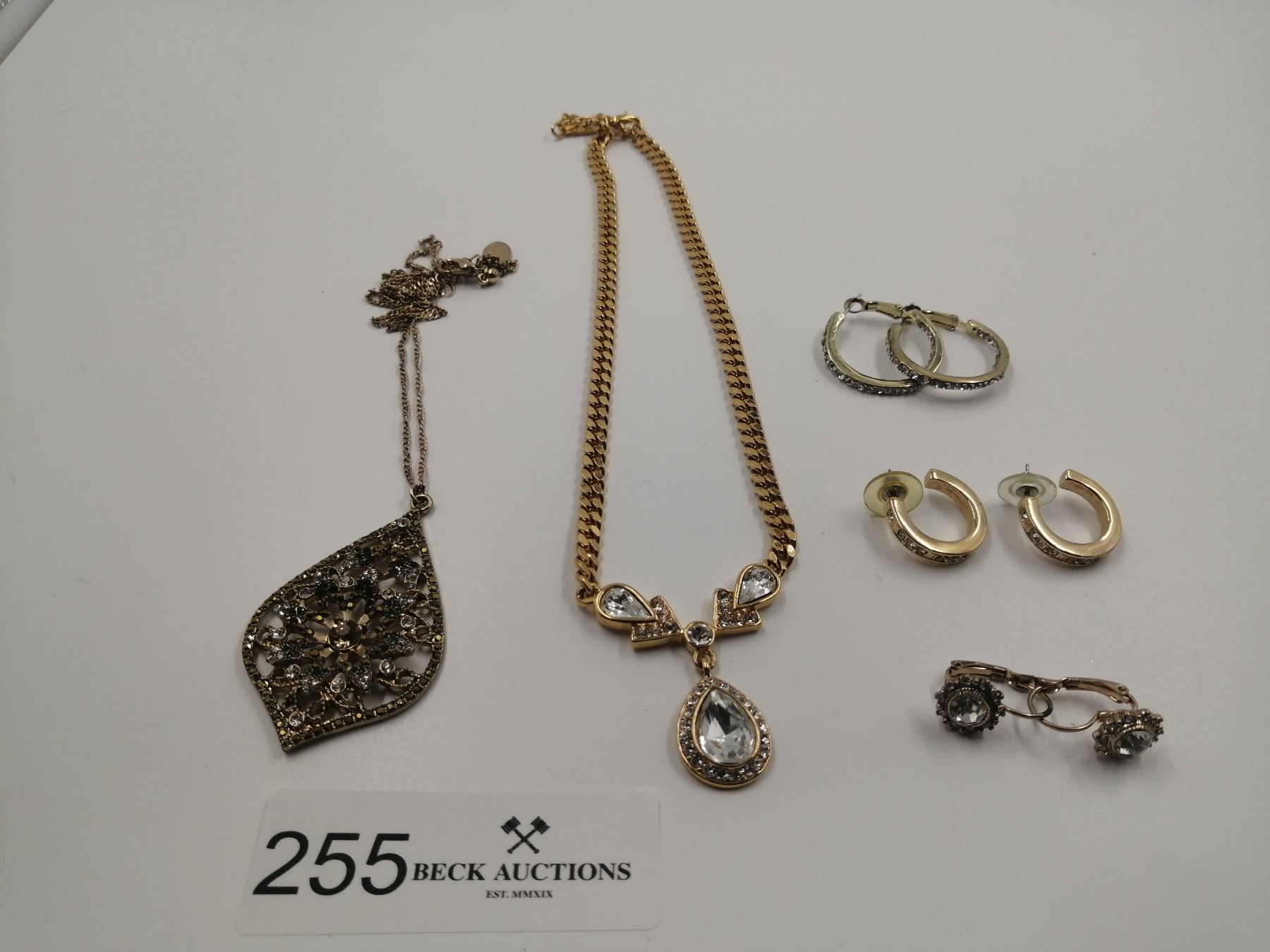 2 x Gold-Colored Necklaces and 3 x Pairs of Gold-Colored Earrings