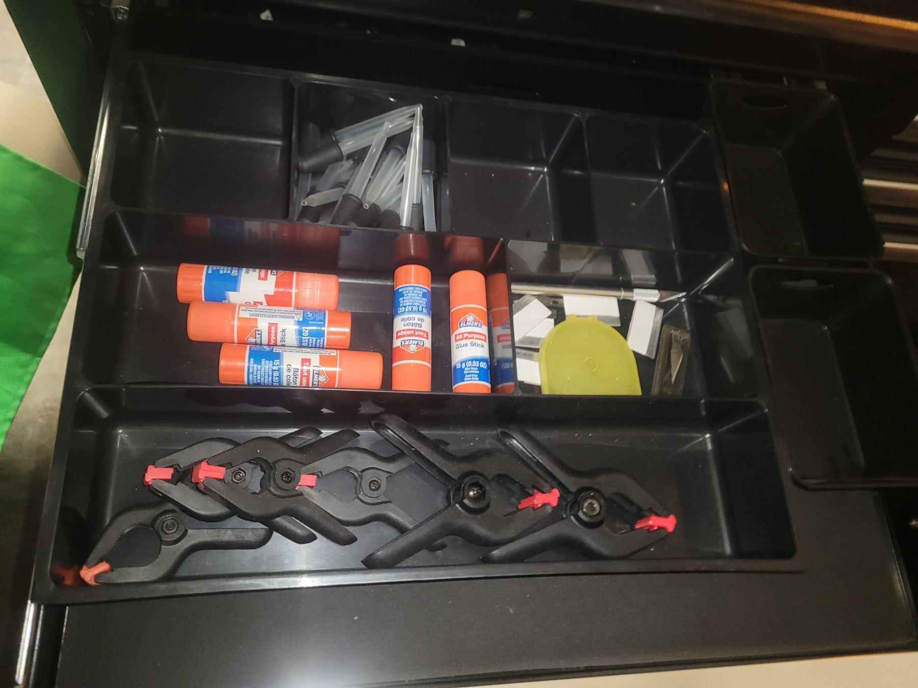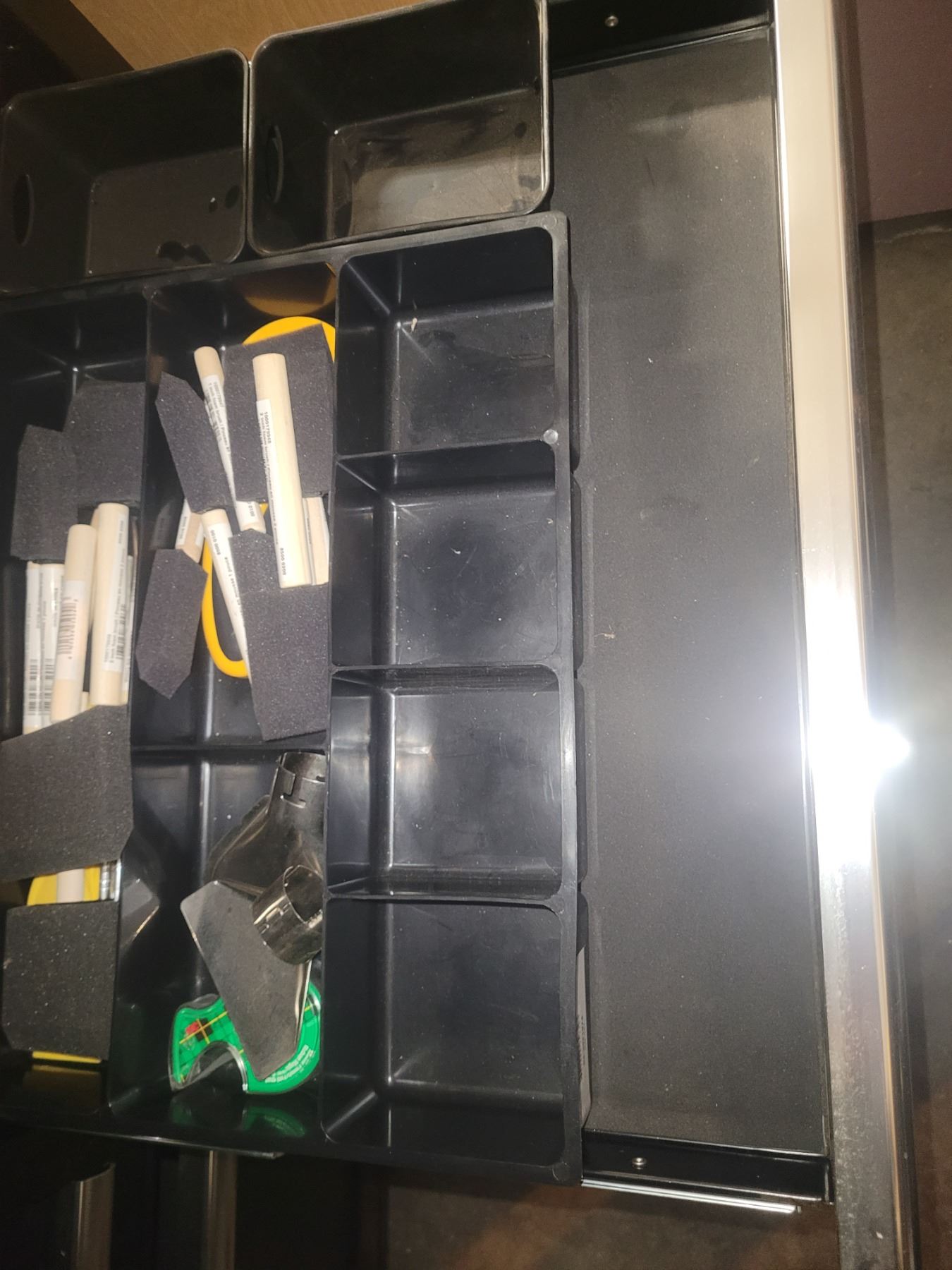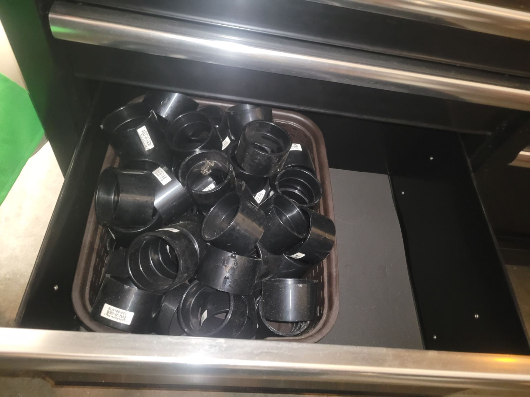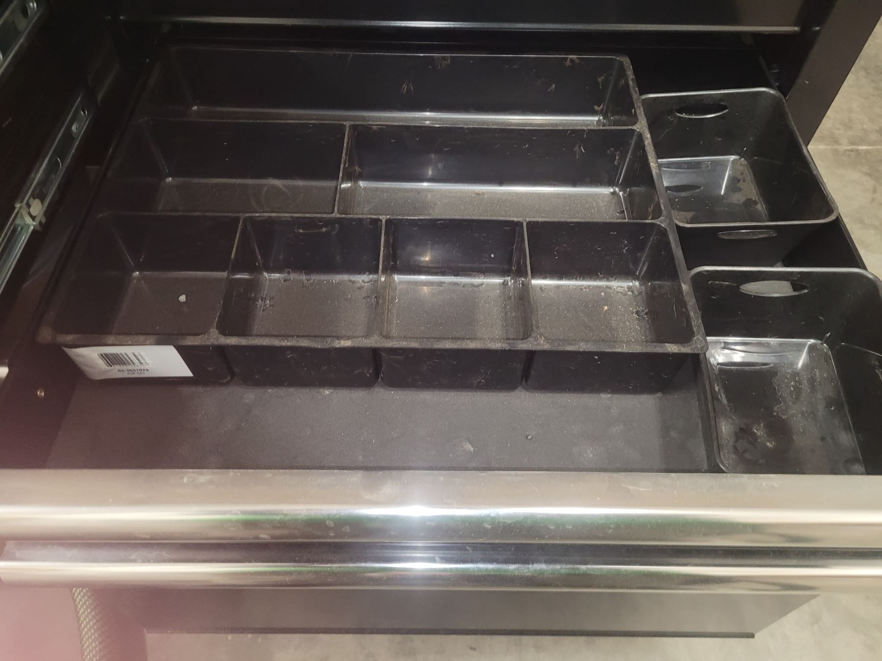 2 chests are joined together to form a work bench. We are unsure if they are bolted together on the sides or just with the top wood bench top. Router on top not included. Rolling chests include contents in drawers 52x48x38 each. Pickup at 11 am