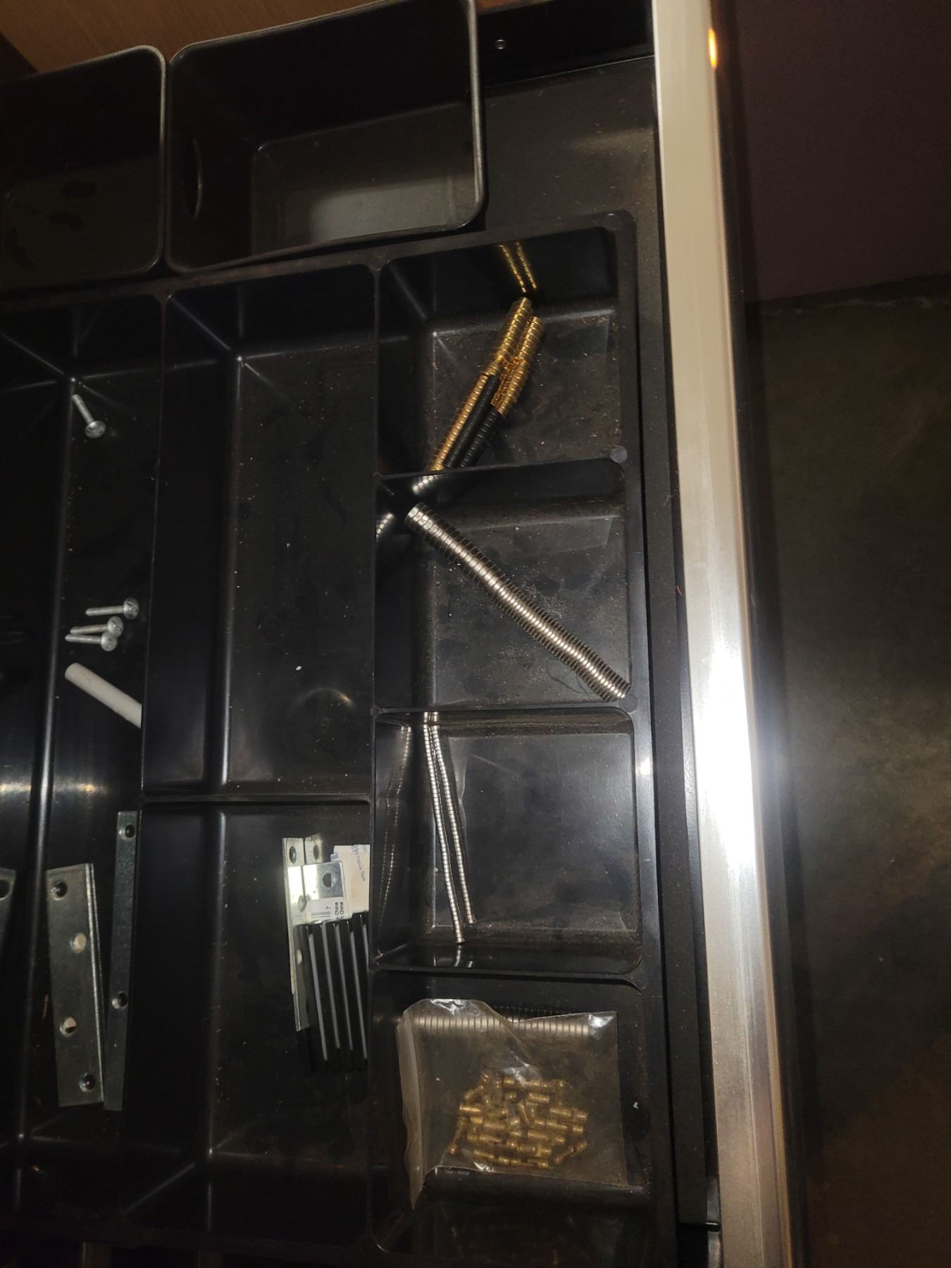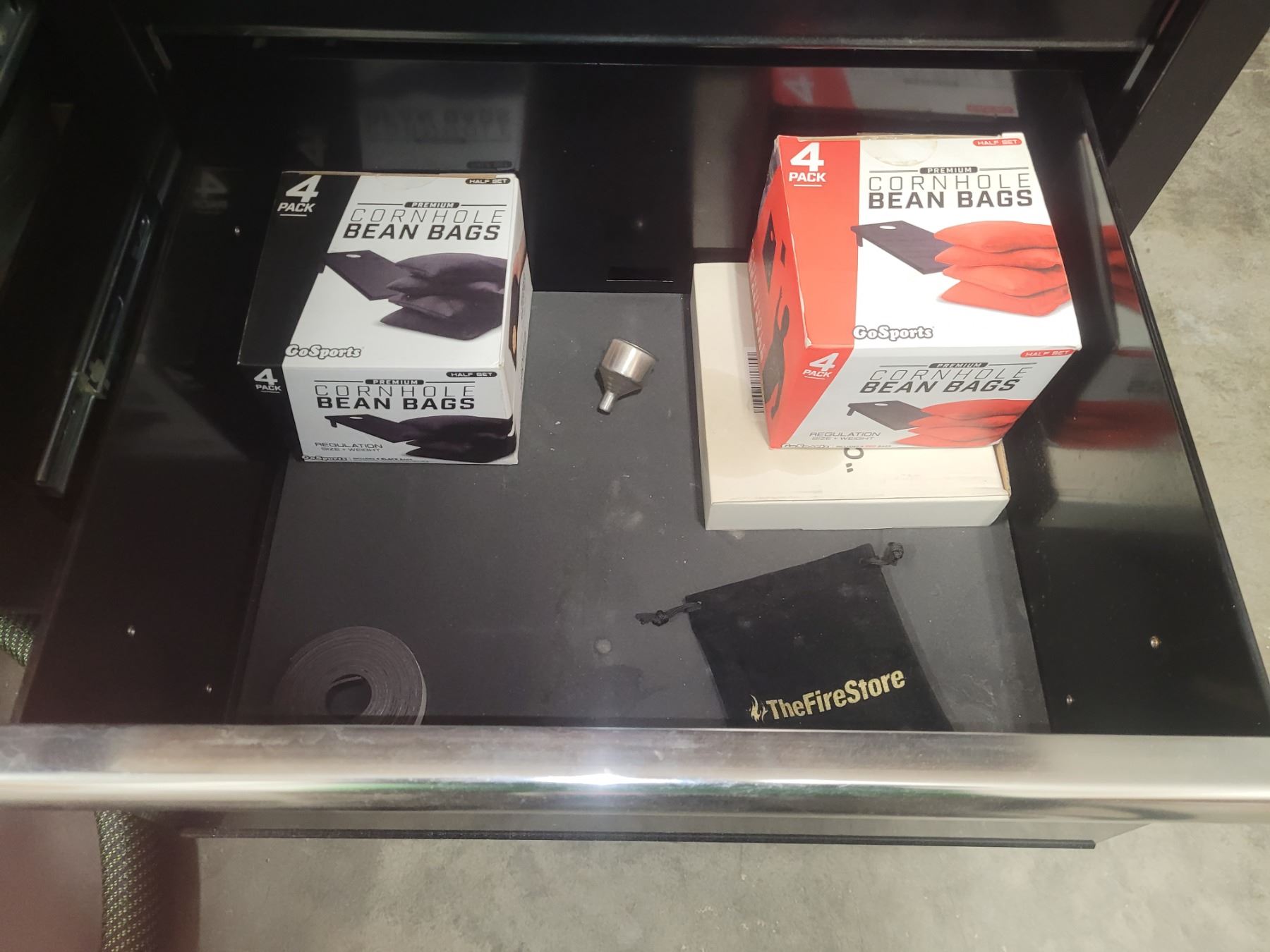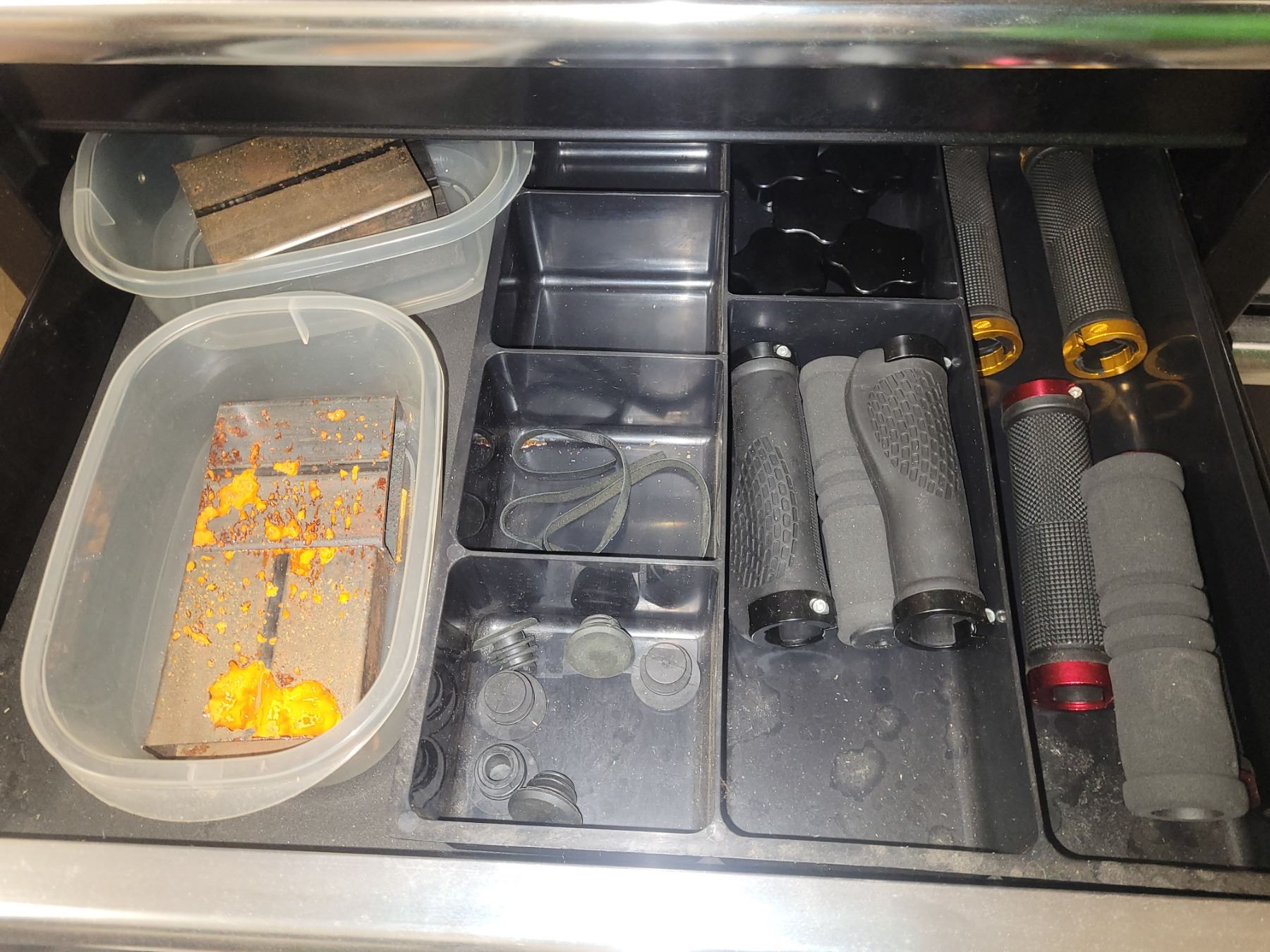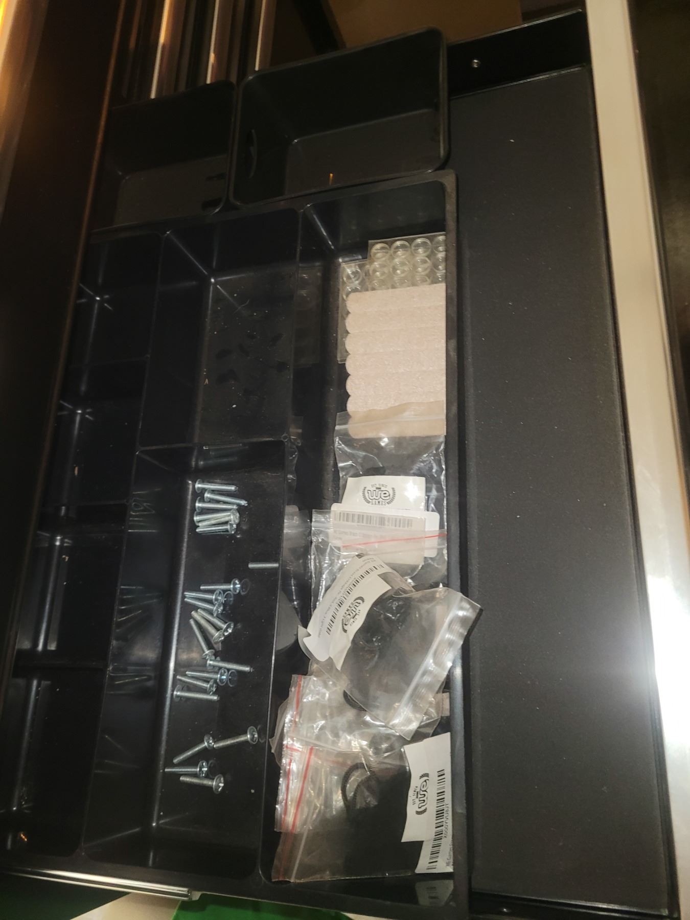 2 chests are joined together to form a work bench. We are unsure if they are bolted together on the sides or just with the top wood bench top. Router on top not included. Rolling chests include contents in drawers 52x48x38 each. Pickup at 11 am