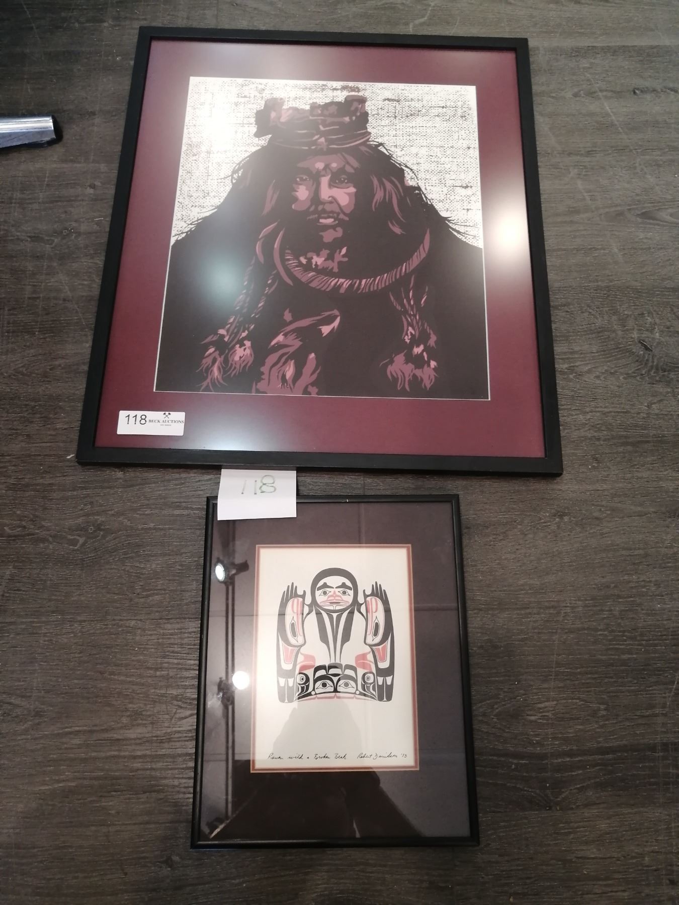 Smaller piece is called "Raven With a Broken Beak" by Robert Davidson and measures 12" x 9.75"