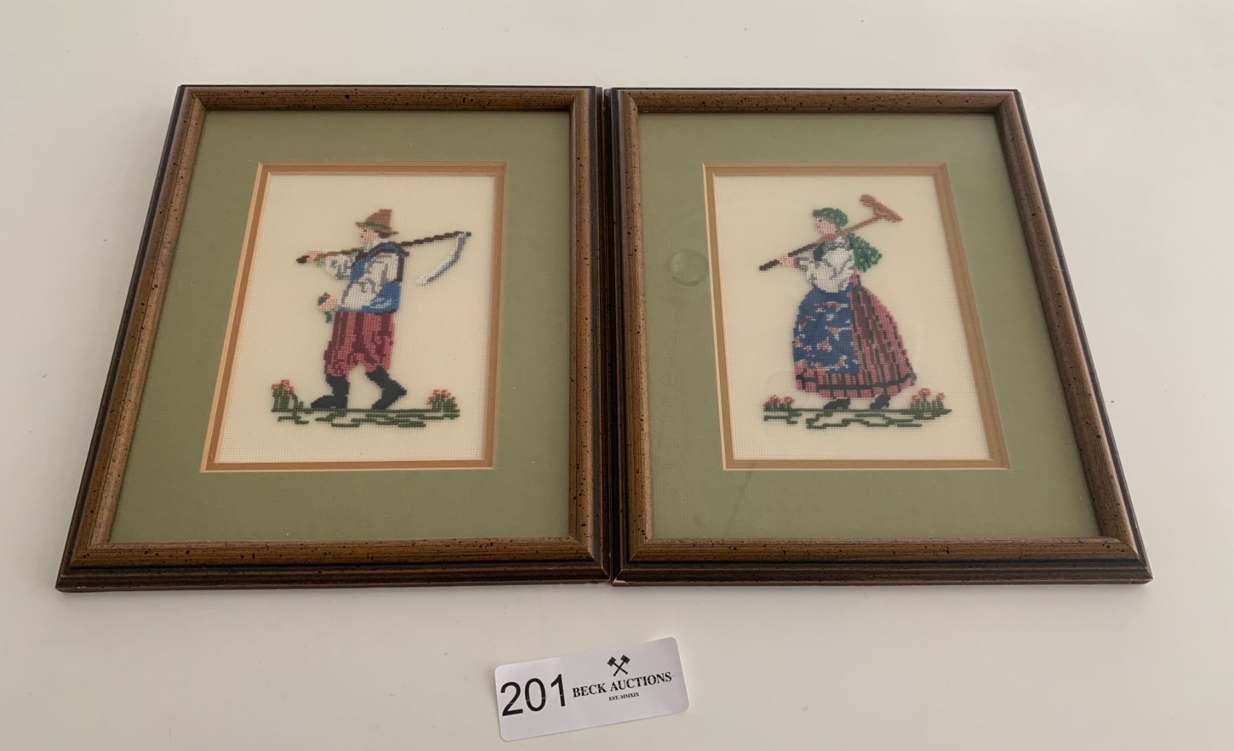 2 x Needlepoint Artworks of European Farmers - Artist Unknown