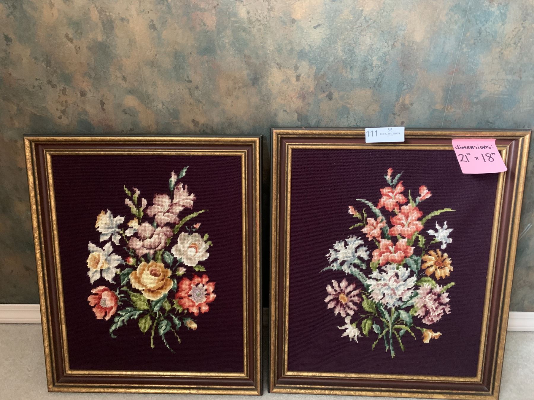 2 x Needlepoint Floral Artworks (21  x 18 )