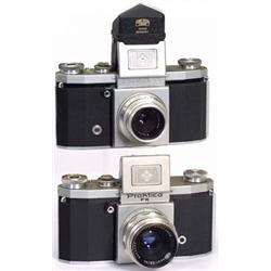 Kamera-Werkstätten, Dresden: 1) "Praktica", SLR, 1951, Nr. 41.019, Tessar 4,5/40 (!), Objektivdeckel. Mit Carl Zeiss Aufsteckprisma. - Praktica with rare Tessar 4,5/40, lens cap and Zeiss prism finder. (2-/2) - Und: 2) "Praktica FX", 1954, Tessar 2,8/50, (3/2). - € 140/190 - (126/13)