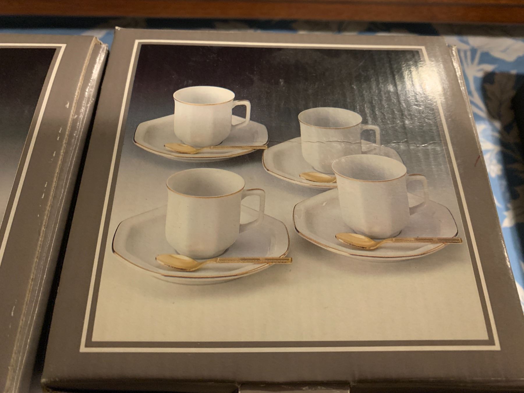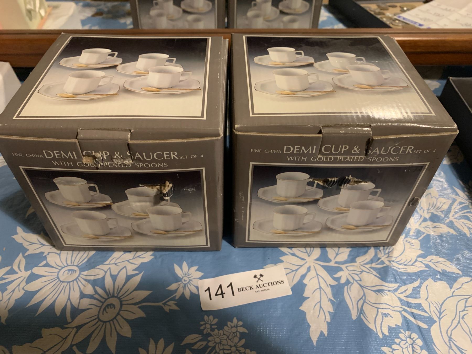2 x Sets of 4 Fine China Demi Cup & Saucer w/ Gold Plated Spoons