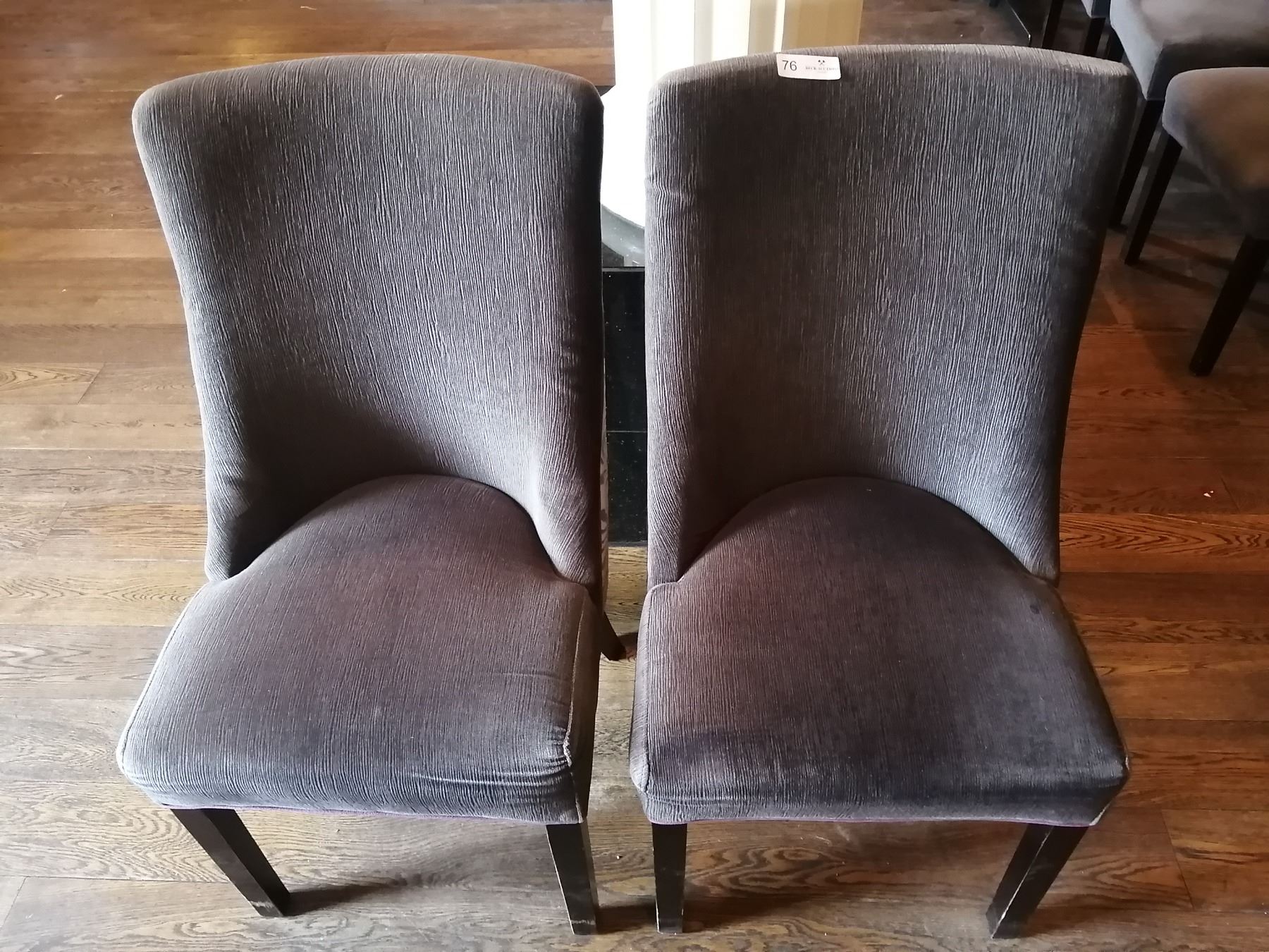 One chair has some worn fabric on bottom and some minor chips in one of the legs (pictured)