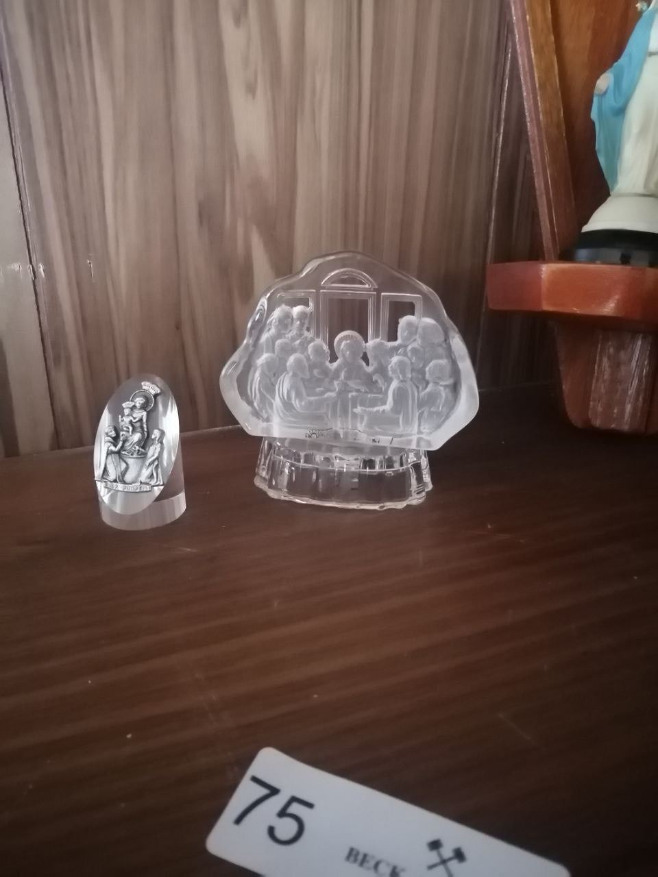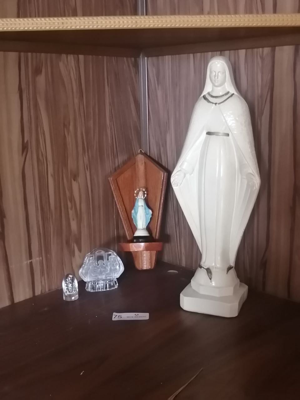 2 x Virgin Mary Statues and 2 x Glass Religious-Scene Figurines