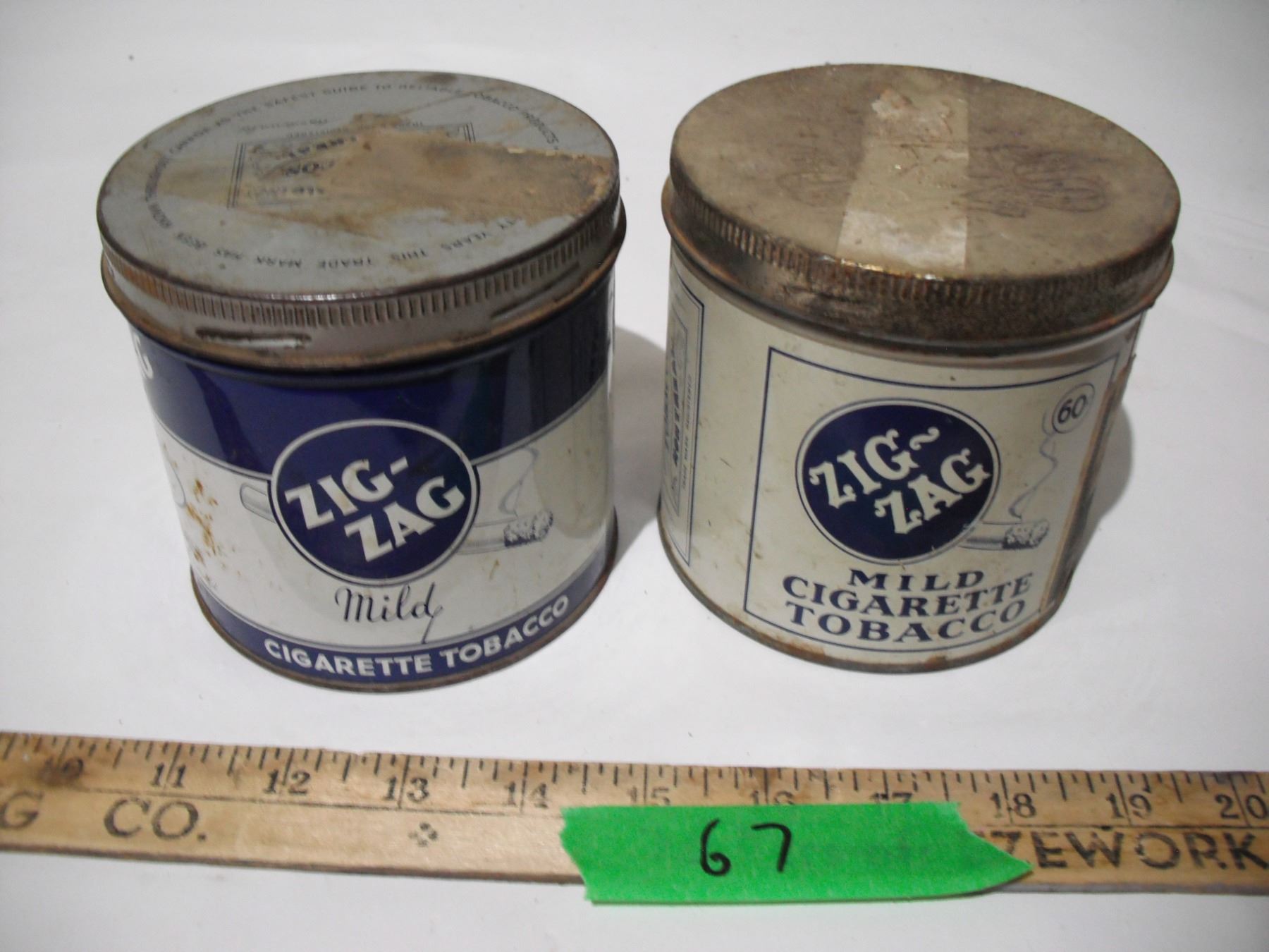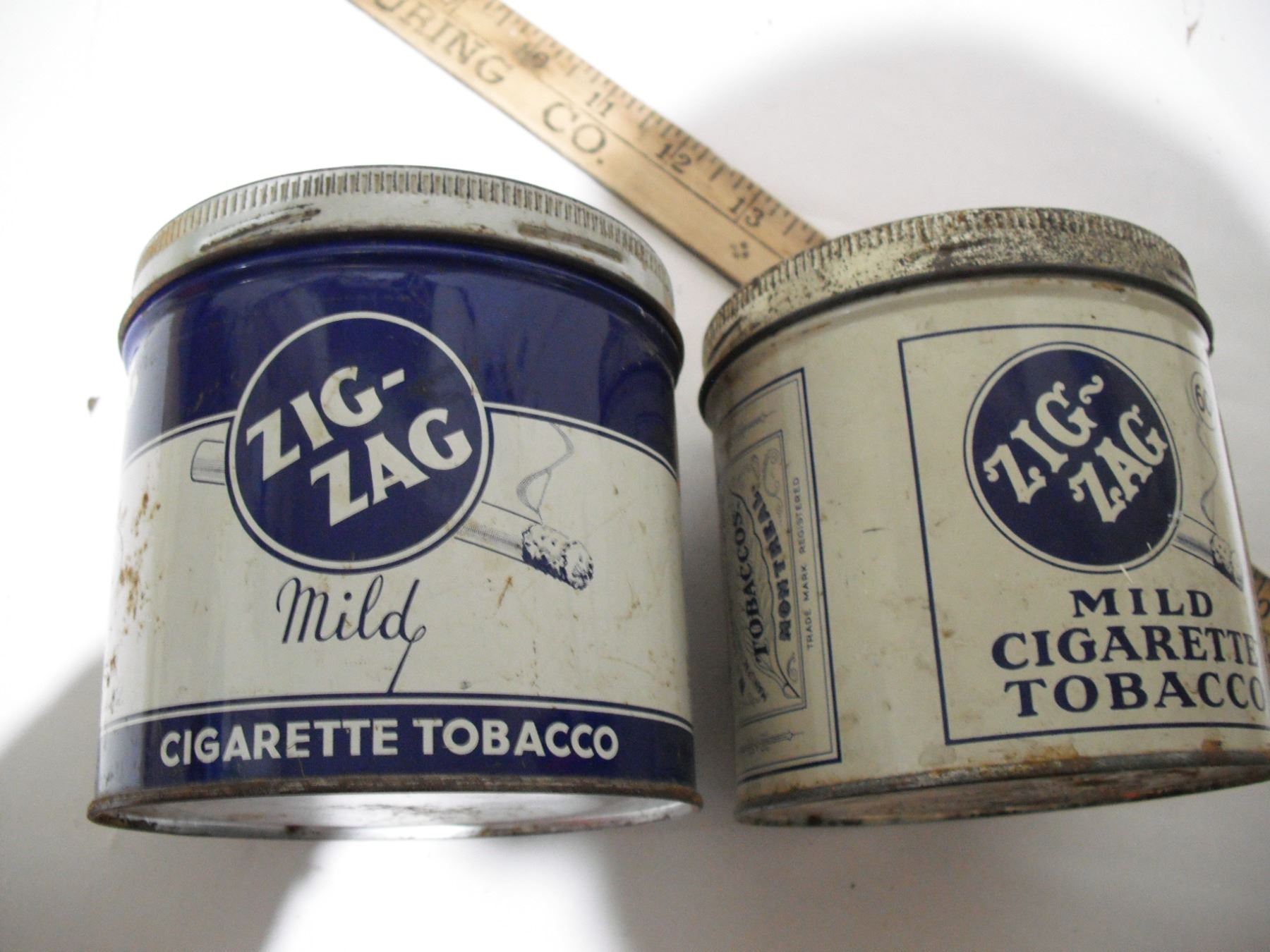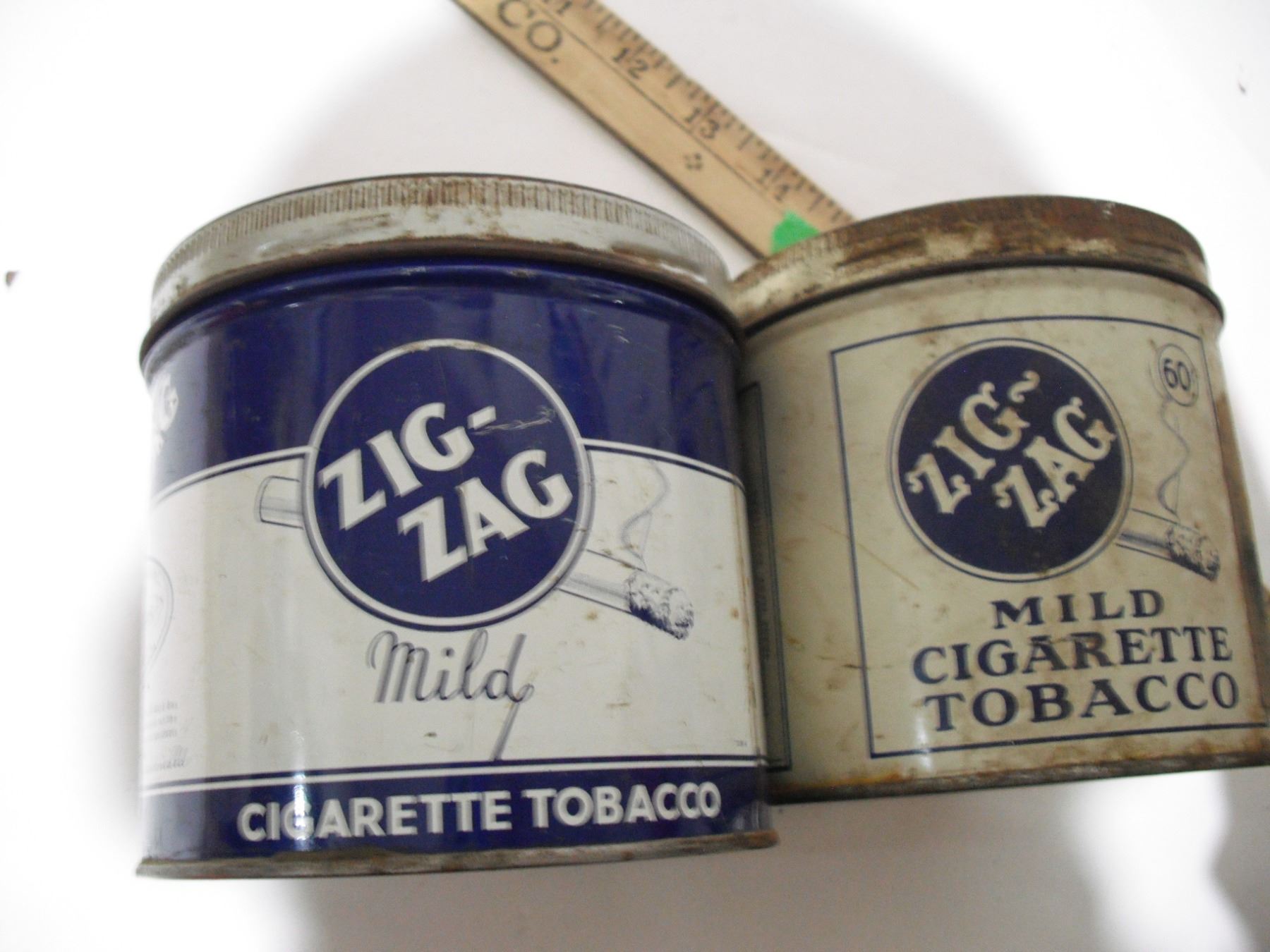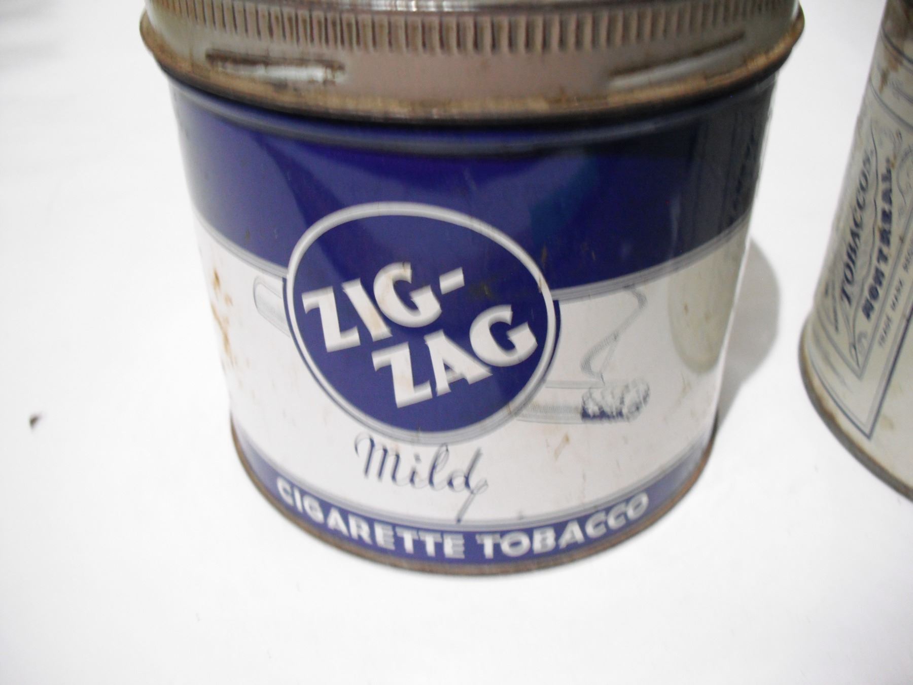 2 zig zag tobacco tins