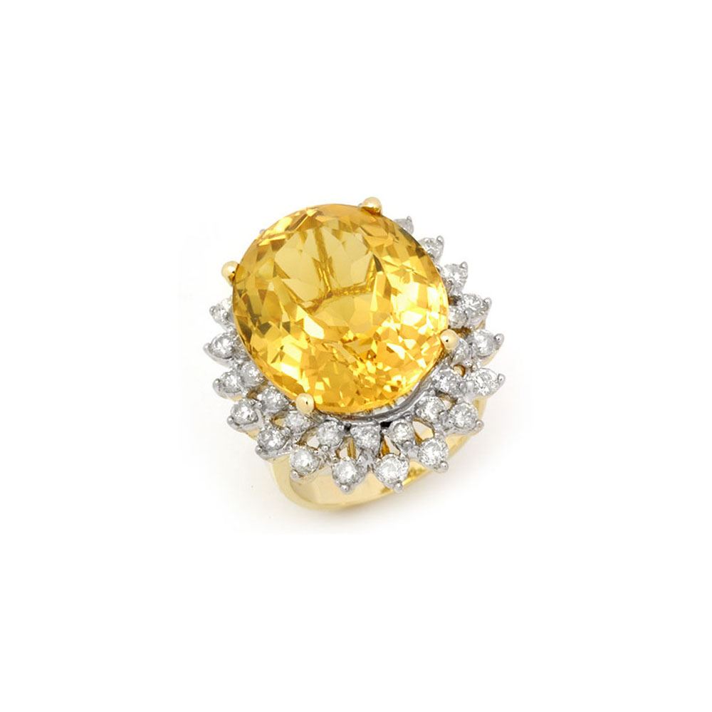 20.0 ctw Citrine & Diamond Ring 14K Yellow Gold