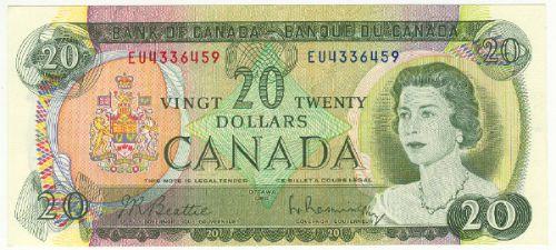 Bank of Canada; $20.00 1969, BC-50a, UNC, Signature; Beattie Rasminsky, serial; EU4336459.