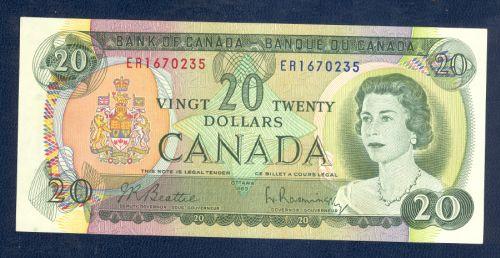 Bank of Canada; $20.00 1969, BC-50a, UNC, signature Beattie Rasminsky, serial # ER1670235. A lovely note.