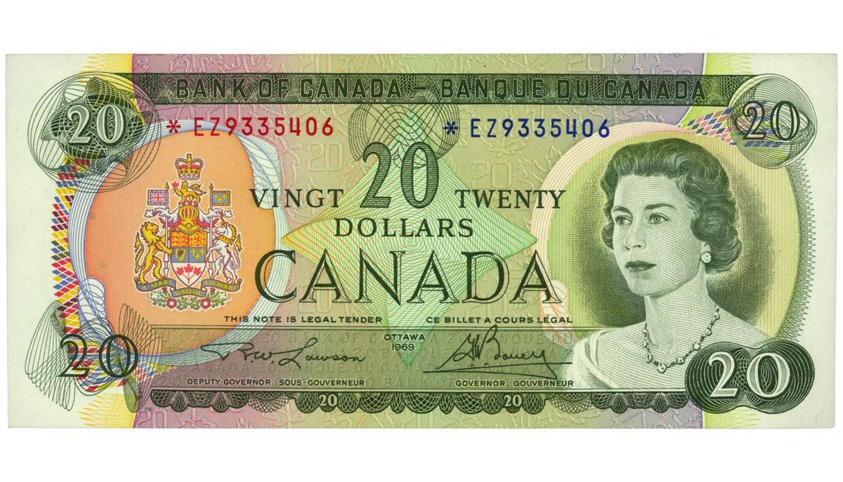 $20.00. 1969. BC-50bA. Lawson-Bouey. Replacement Note. No.*EZ9335406. PMG graded Very Choice About Uncirculated-58.