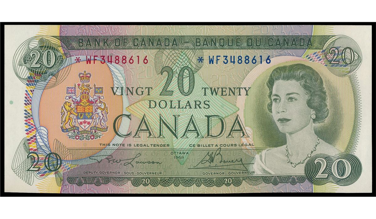 $20.00. 1969 Issue. BC-50abA. No. *WF3488616. Lawson-Bouey. Unc.