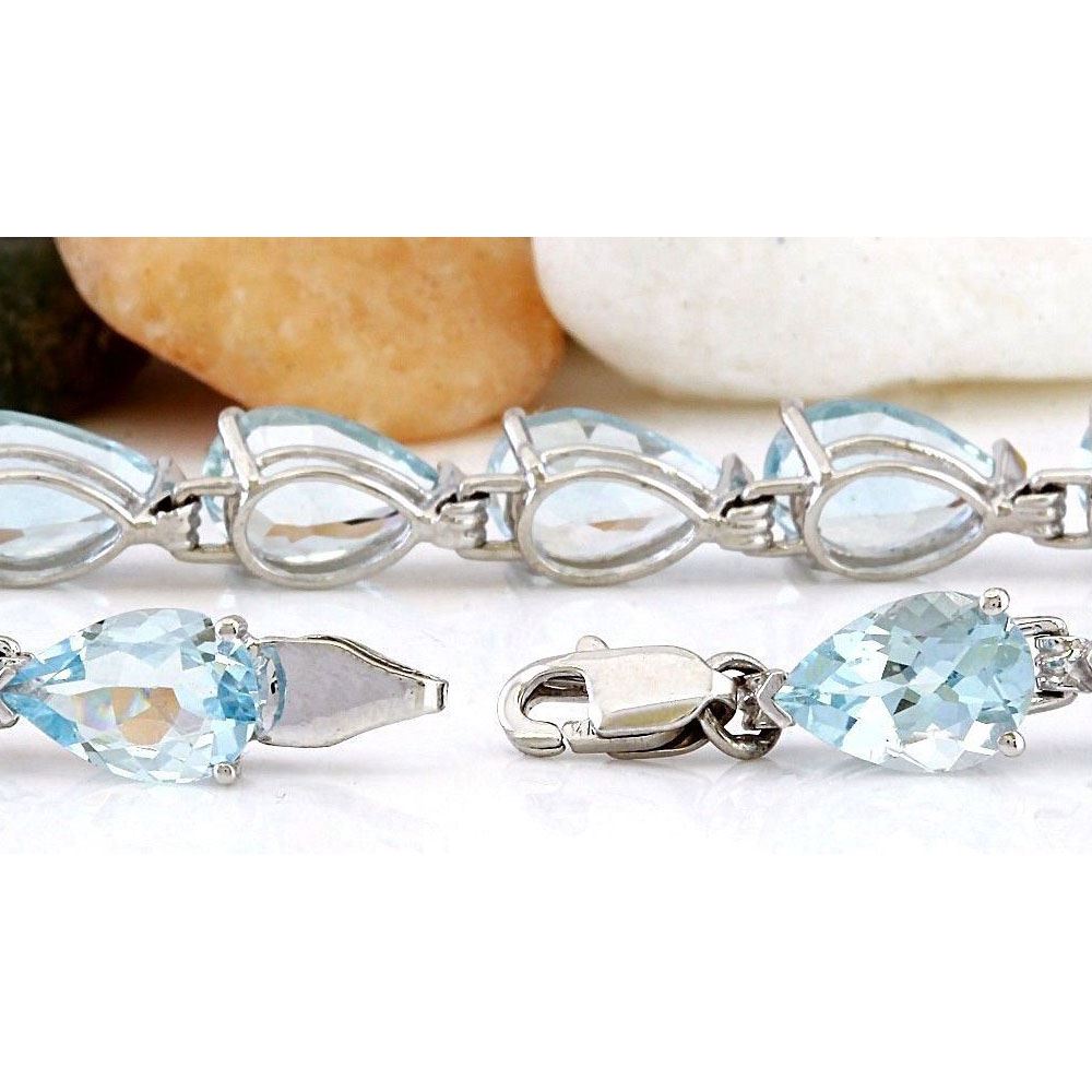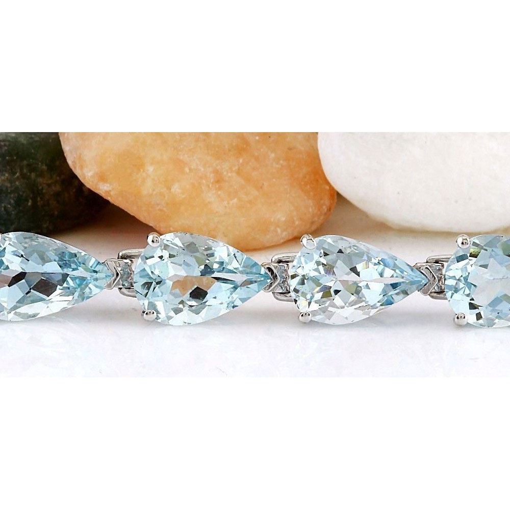 20.00 CTW Natural Aquamarine 18K Solid White Gold Bracelet