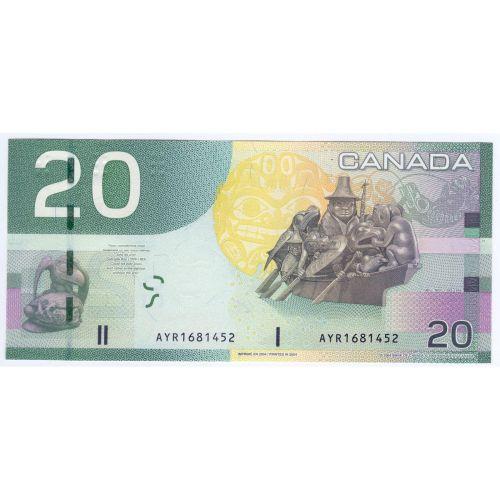 Bank of Canada, $20.00 Insert note 2004, grade Choice UNC, Charlton # BC-64aA, signature Jenkins Dodge, serial AYR1681452, insert range 1.620M - 1.755M. Problem free note.