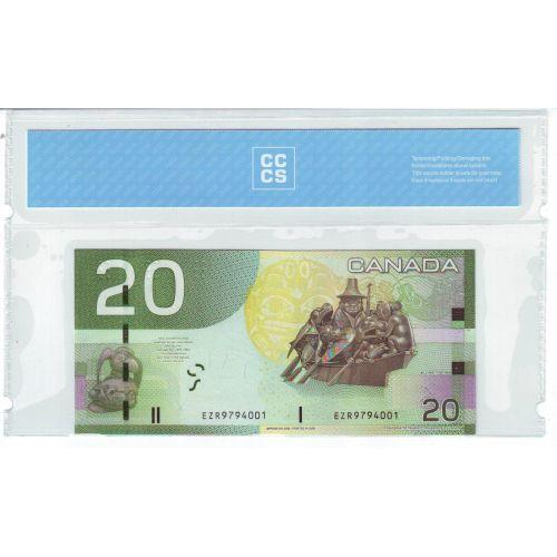 Bank of Canada, $20.00 Insert note 2006, graded CCCS UNC-63, Charlton # BC-64aA-i, signature Jenkins Dodge, serial EZR9794001, insert range 9.720M - 9.990M. Problem free note.