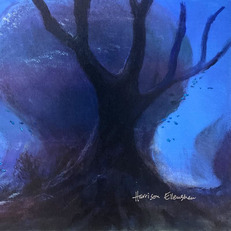"20,000 Leagues" is a limited edition giclee on canvas by Peter (1913-2007) and Harrison Ellenshaw, PP numbered 2/5 and hand signed by the artists. This piece is licensed by Disney Fine Art. Includes Letter of Authenticity. Measures approx. 18" x 36" (image). There are faint horizontal striation lines on the bottom-right part of the canvas that is only noticeable upon close inspection. There are also dark ink marks in the bottom-right border that will be concealed when the piece is framed.