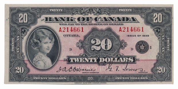 1935 Issue. English Text. BC-9b. Small Seal. No. A214661/D. BCS graded Very Fine-30.