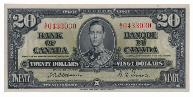 1937 Issue. BC-25a. Osborne-Towers. No. A/E9433030. BCS graded Unc-60.