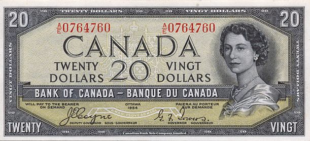 1954 Issue. BC-33a. Coyne-Towers. ‘Devil’s Face’. No. A/E0764760. PCGS graded CH UNC-64PPQ. A scarce Radar issue. Attractive.