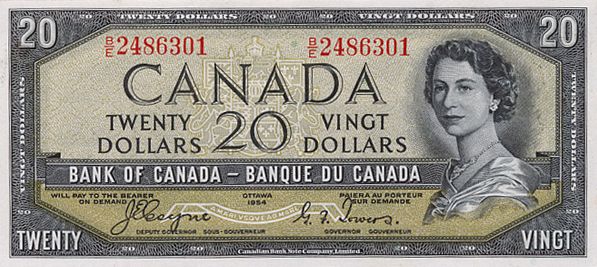 1954 Issue. BC-33a. Coyne-Towers. ‘Devil’s Face’. No. B/E2486301. A ‘changeover note’. BCS graded Unc-60.