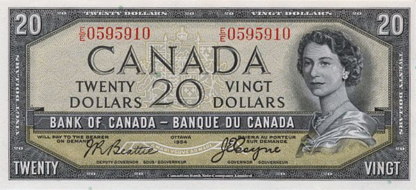 1954 Issue. BC-33b. Beattie-Coyne. ‘Devil’s Face’. No. E/E0595910. CCCS graded Gem Unc-65.