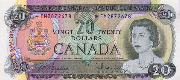 1969 Issue. BC-50aA. Beattie-Rasminsky. No. *EM2872678. PCGS graded UNC-63 PPQ.