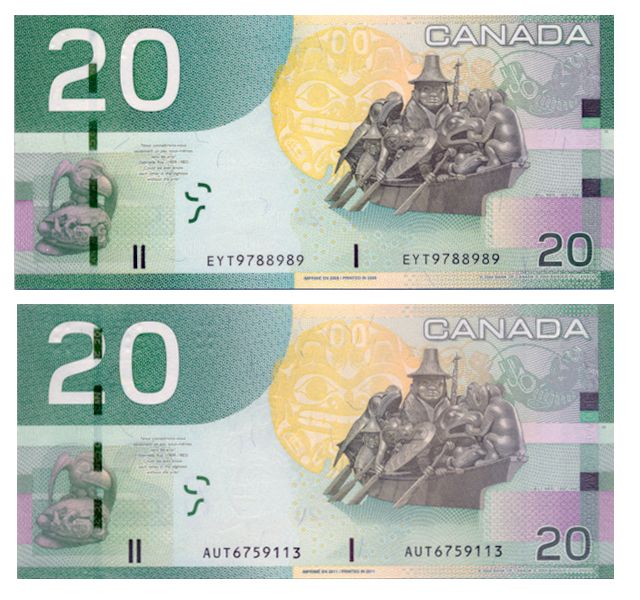 Issue of 2004. (Printed 2005). BC-64aA-i. No. EYT9788989. Replacement. Choice Unc-63; $20.00. Issue of 2004. (Printed 2011). BC-64cA. No. AUT6759113. Replacement. Choice Unc-63. Lot of two (2) BCS graded notes.