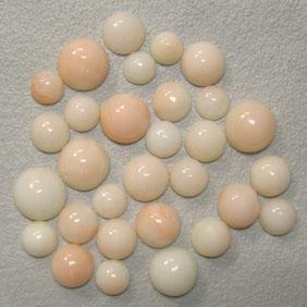 LOT OF ROUND SHAPED ITALIAN CORAL CABOCHONS. THEY WEIGHT 20 CTS AND MEASURE BETWEEN 4 AND 7 MM DIAMETER. NATURAL COLOR