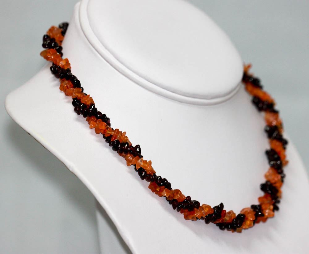 20.01 CTW Natural Twisted Design Un-Cut Garnet & Red On **|**|** 20.01 CTW (Total Weight With Brass Clasp) Twizted Natural Un-Cut Garnet & Red Onyx Necklace