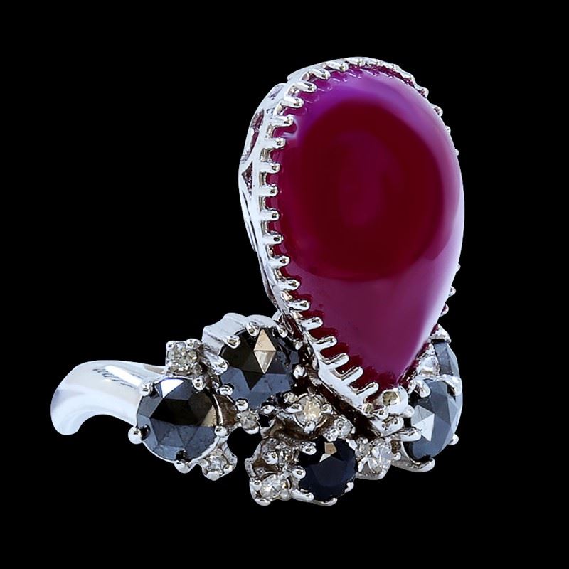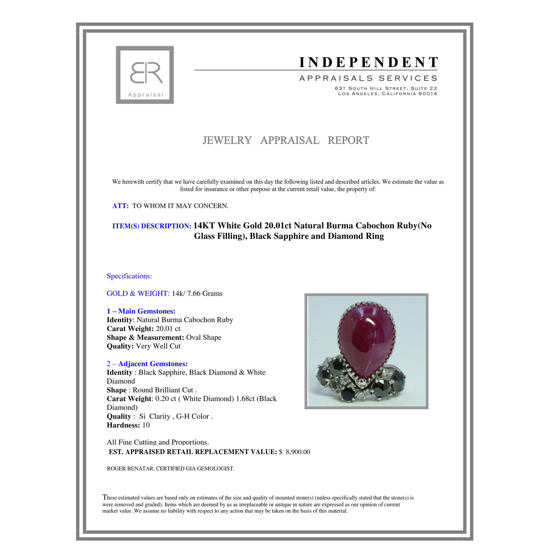 14K W/G RUBY RING:7.66GM / RUBY CAB NO GLASS BURMA RUBY :20.01CT / W.DIA :0.20CT / BLACK DIA :1.68CT /#GVR1366