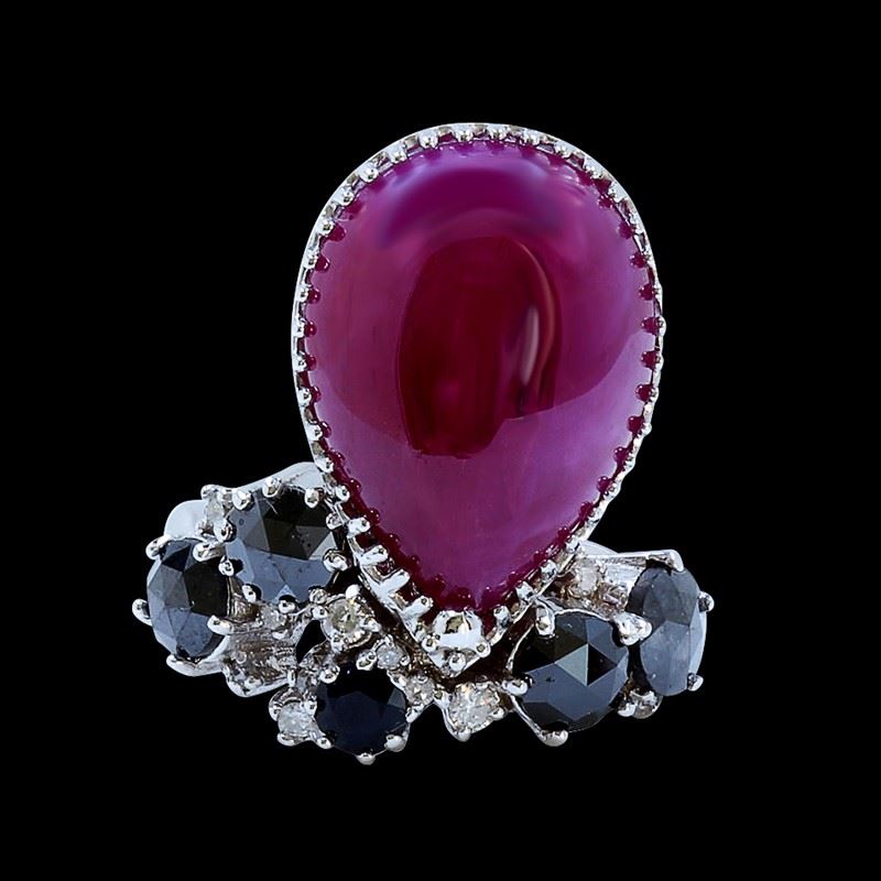 14K W/G RUBY RING:7.66GM / RUBY CAB NO GLASS BURMA RUBY :20.01CT / W.DIA :0.20CT / BLACK DIA :1.68CT /#GVR1366