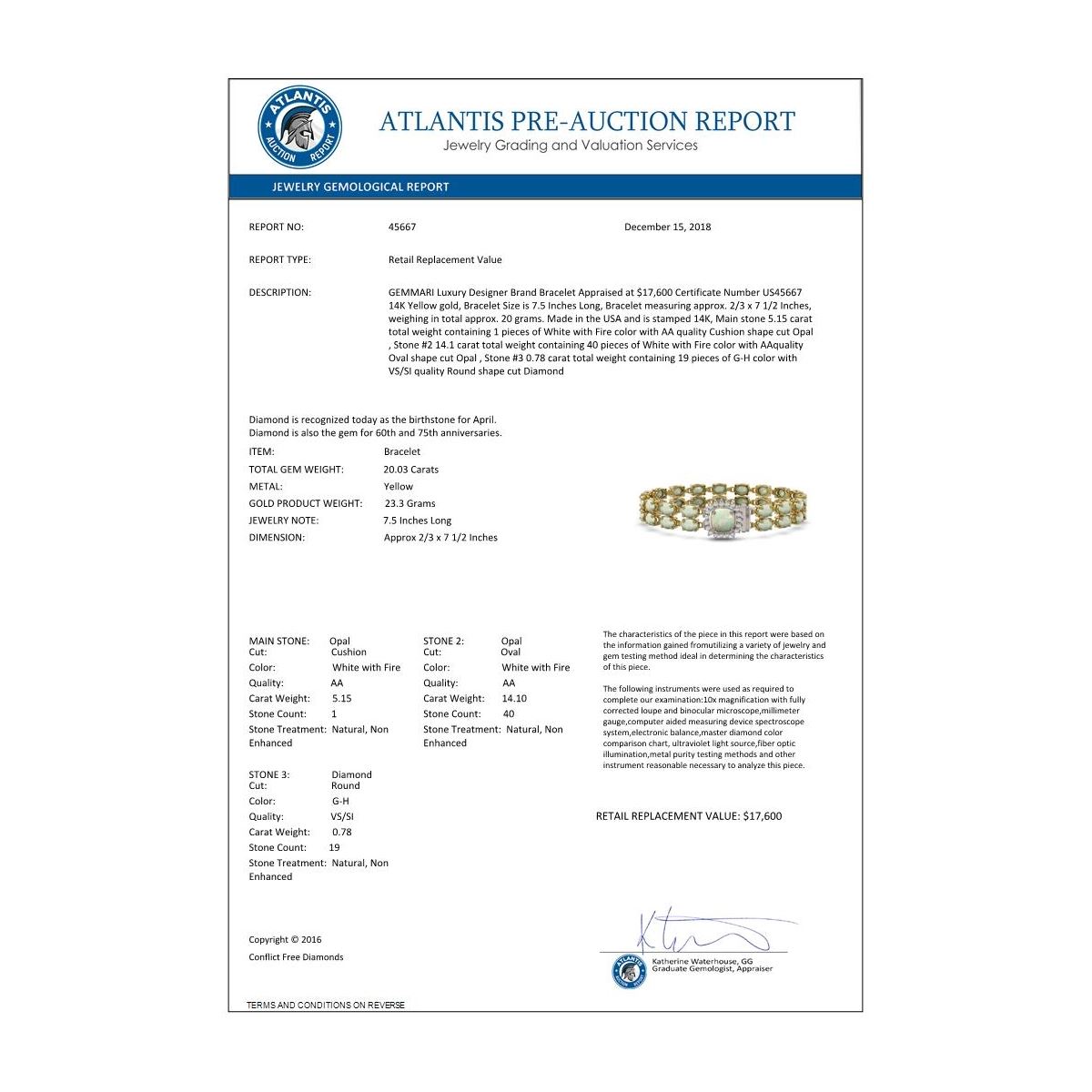 20.03 ctw Opal & Diamond Bracelet 14K Yellow Gold