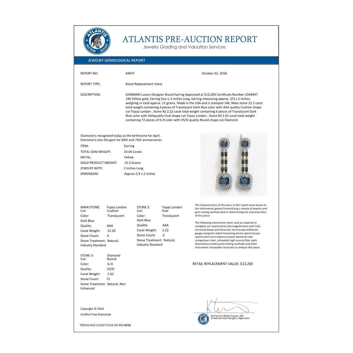 in Auction catalog are not guaranteed and may vary in accuracy. It is the responsibility of prospective bidders to inspect the goods. All reports, measurements, opinion of values, age and quality are offered not guaranteed. Neither the Auction house, nor the consignor, is responsible for the accuracy of printed or verbal descriptions or its authenticity. All jewelry items sold by Allied Wholesale Auction are evaluated by third party appraisal firms where certified GIA gemologists evaluate the weight, size and grade of gemstone and/or metal to determine the replacement value of the item. Please be advised that all appraisals are done for insurance purposes only and do not determine the actual value of the jewelry on Auction. The appraisals are done for the sole purpose of protecting the buyer in the event of damage or loss of purchased jewelry items from Allied Wholesale Auction. Allied Wholesale Auction is not responsible for the opinions and appraisals of any third party appraisal firms and their experts.