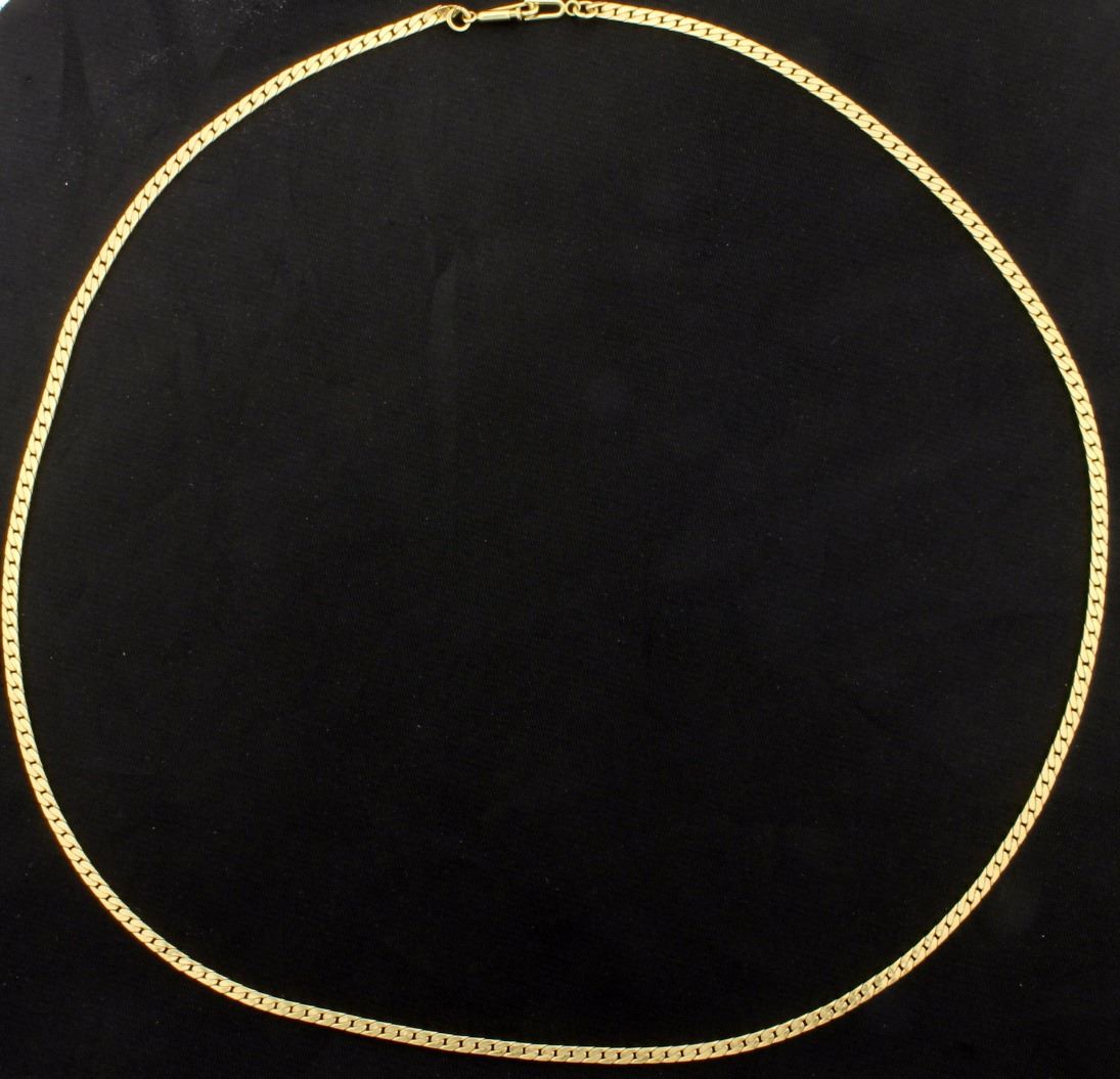 In 14K yellow gold it is 2.5mm wide with a plunger clasp. 11.4g