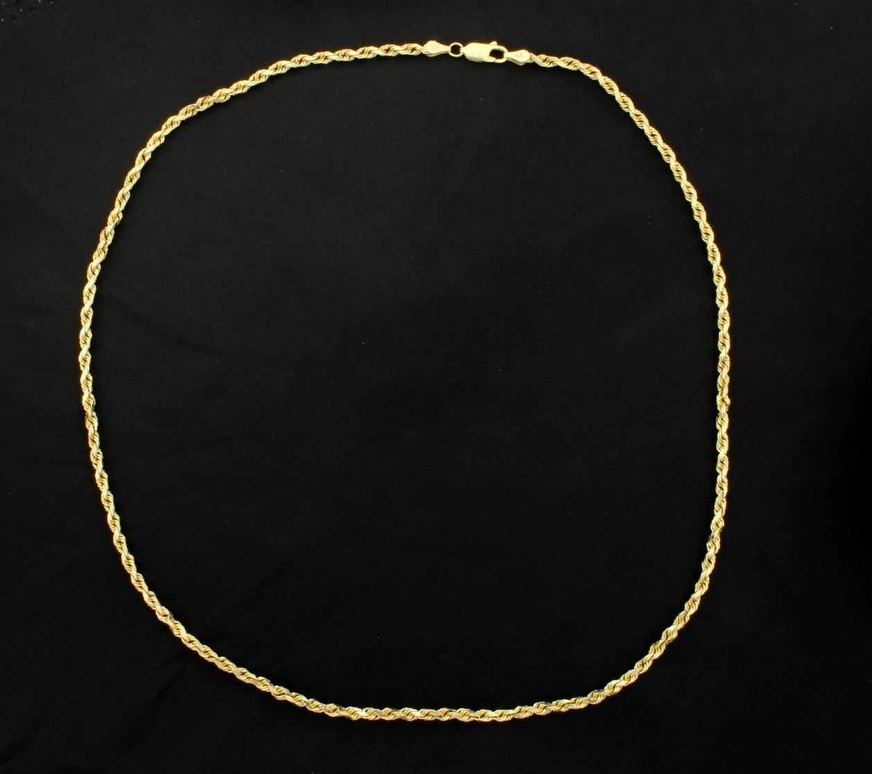The chain is 14K yellow gold and is 2.6mm thick. 16.4g