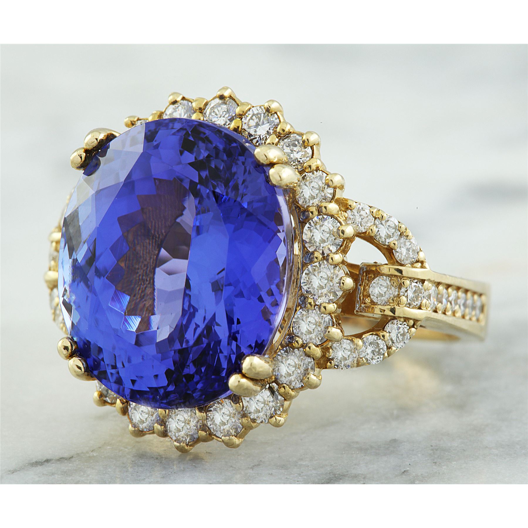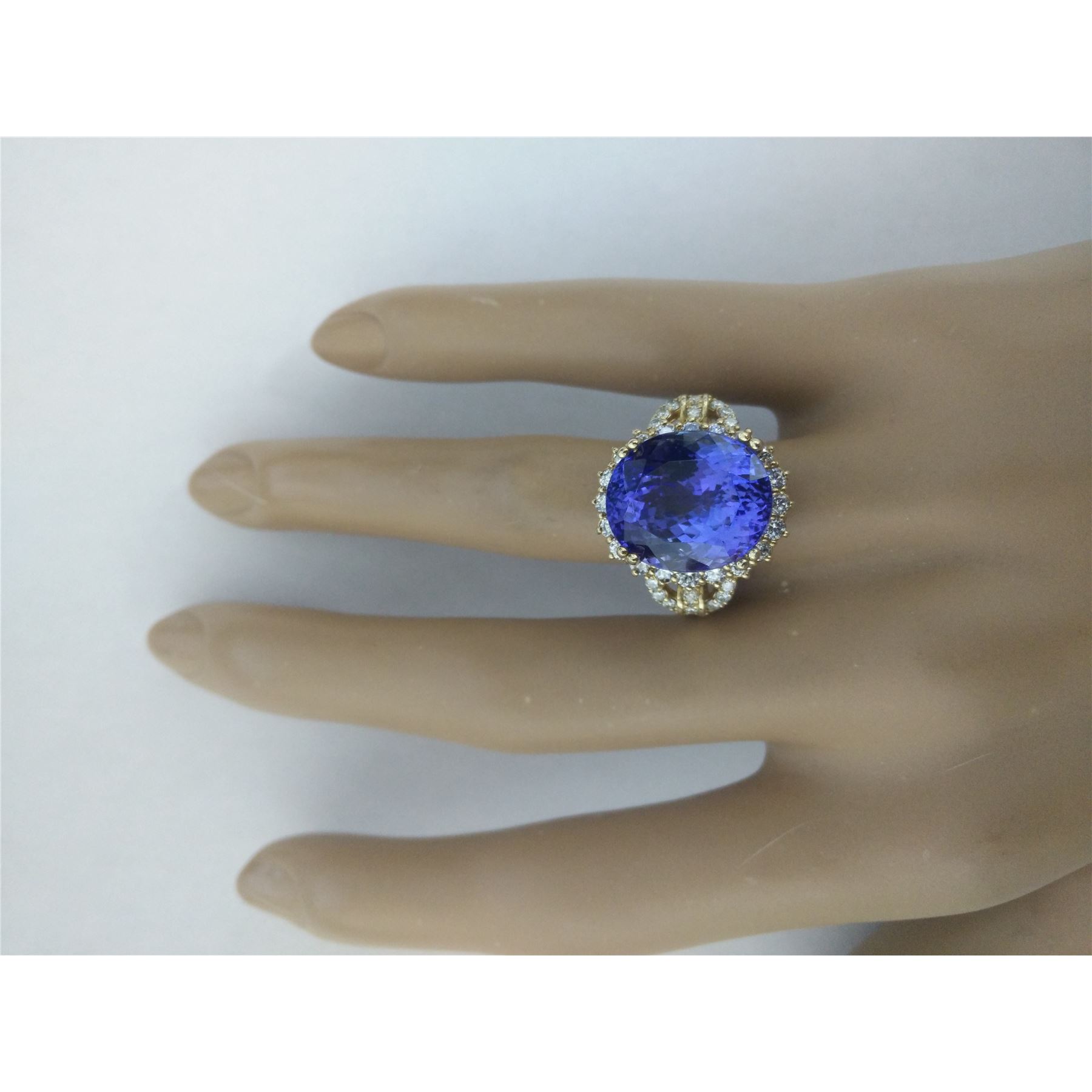 20.15 CTW Tanzanite 14K Yellow Gold Diamond Ring