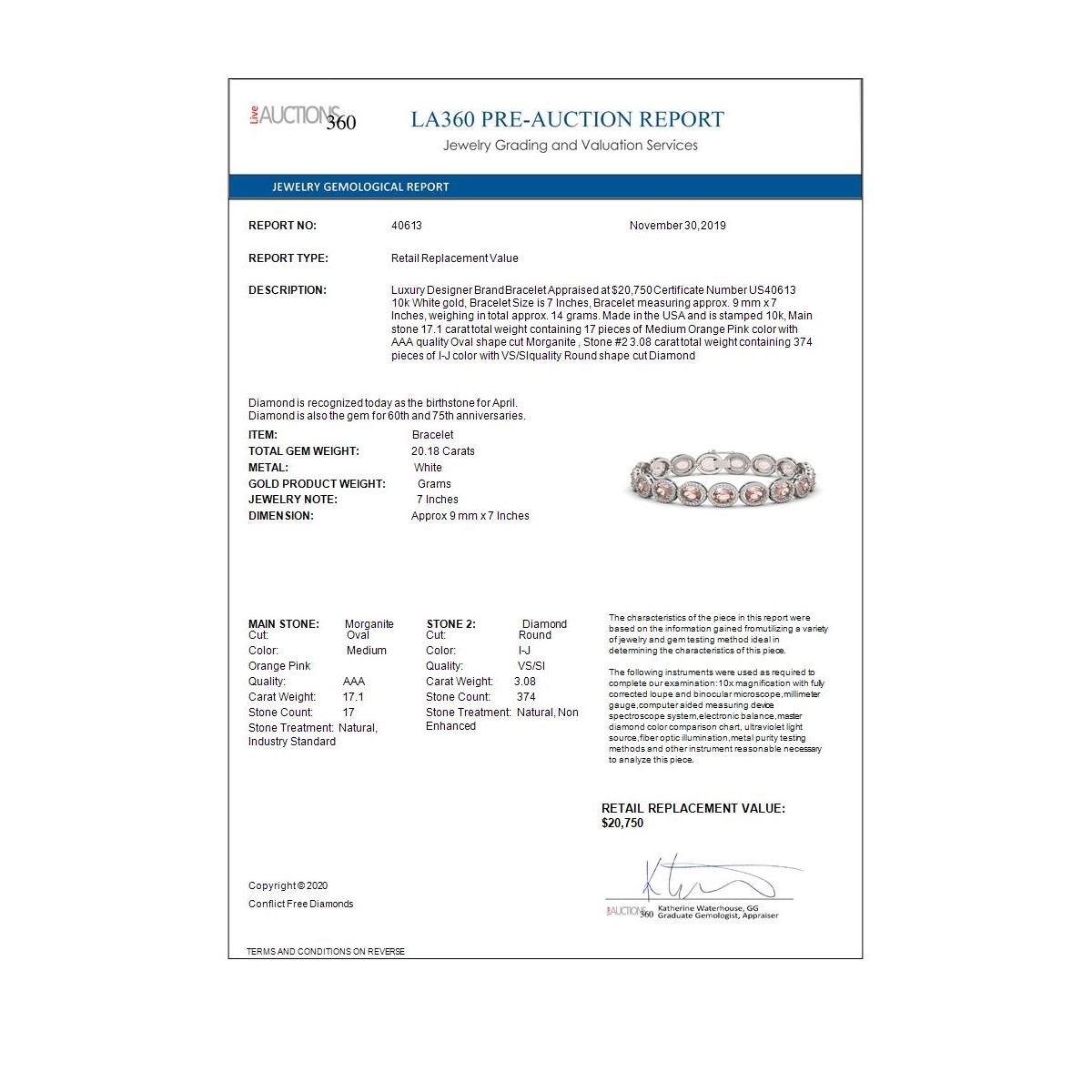 REF-377F3M - SKU: 40613 ---- 20.18 ctw Morganite & Diamond Micro Pave Halo Bracelet 10k White Gold
