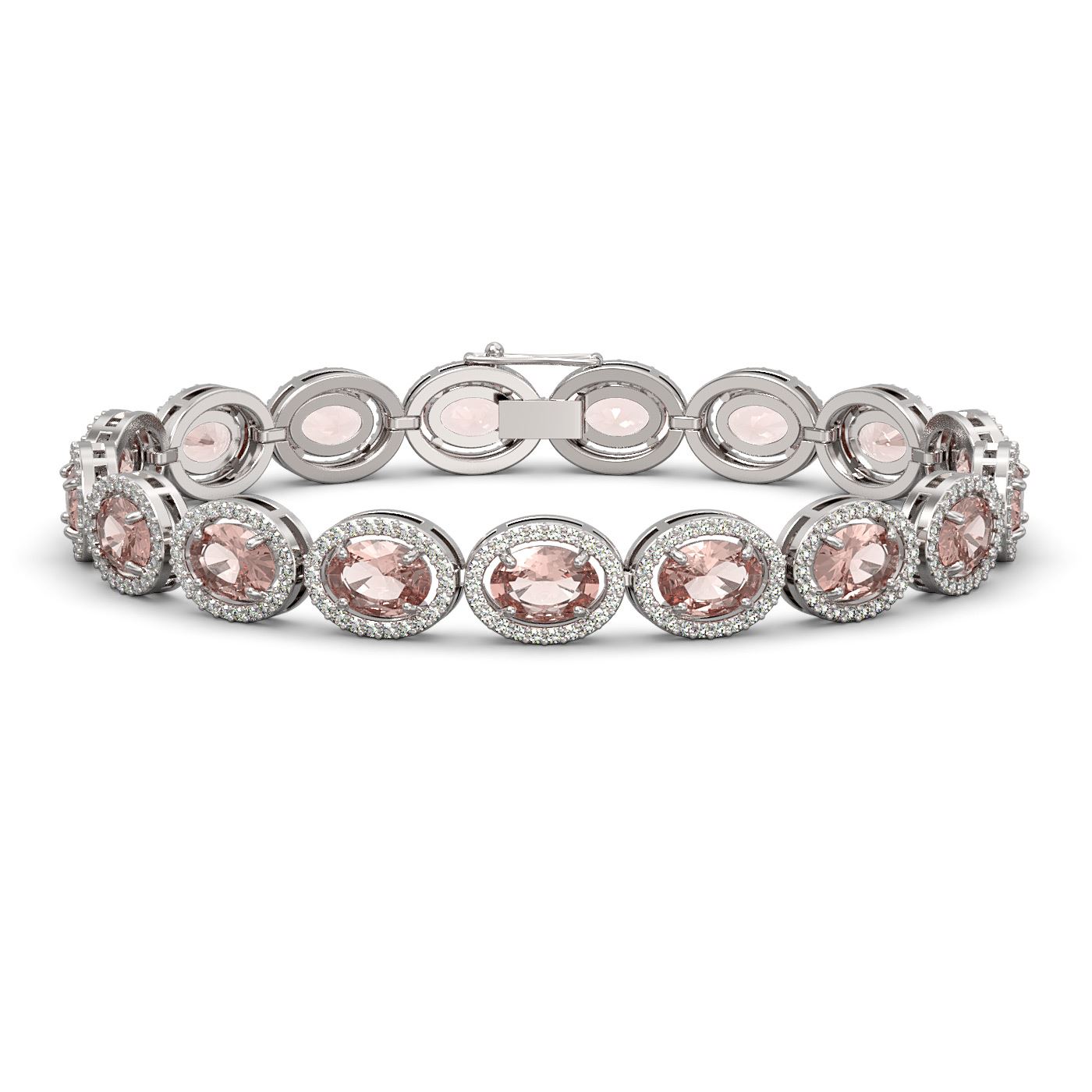 REF-377F3M - SKU: 40613 ---- 20.18 ctw Morganite & Diamond Micro Pave Halo Bracelet 10k White Gold