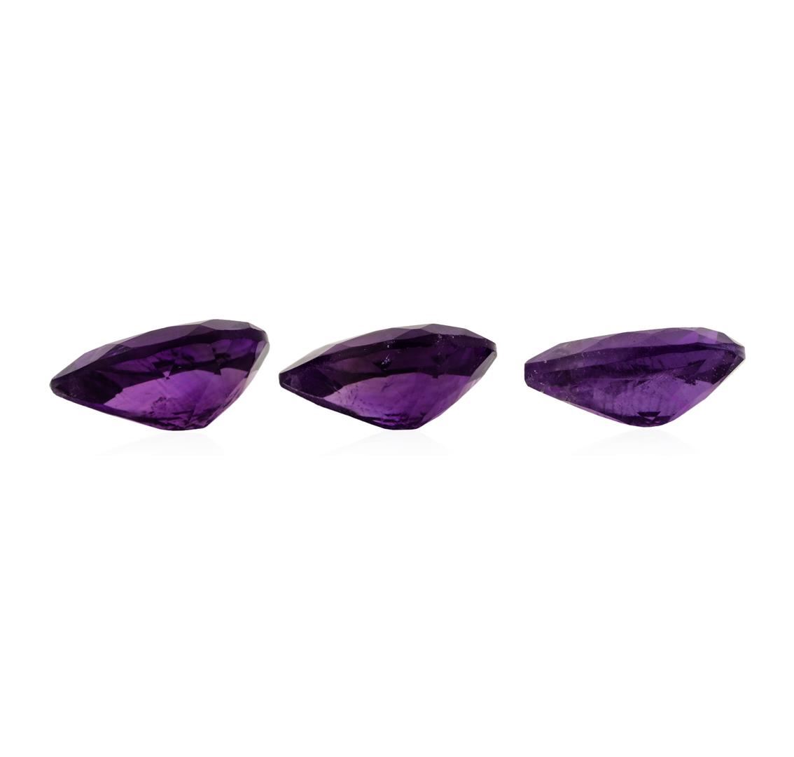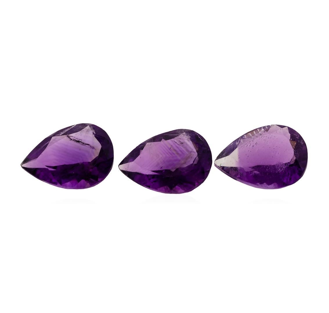 One natural pear cut amethyst parcel of three with an exact weight of 20.18ctw., clarity is slightly included, purple, medium. Gemological Appraisals Services estimates the retail value at $686.12 GAS Appraised.