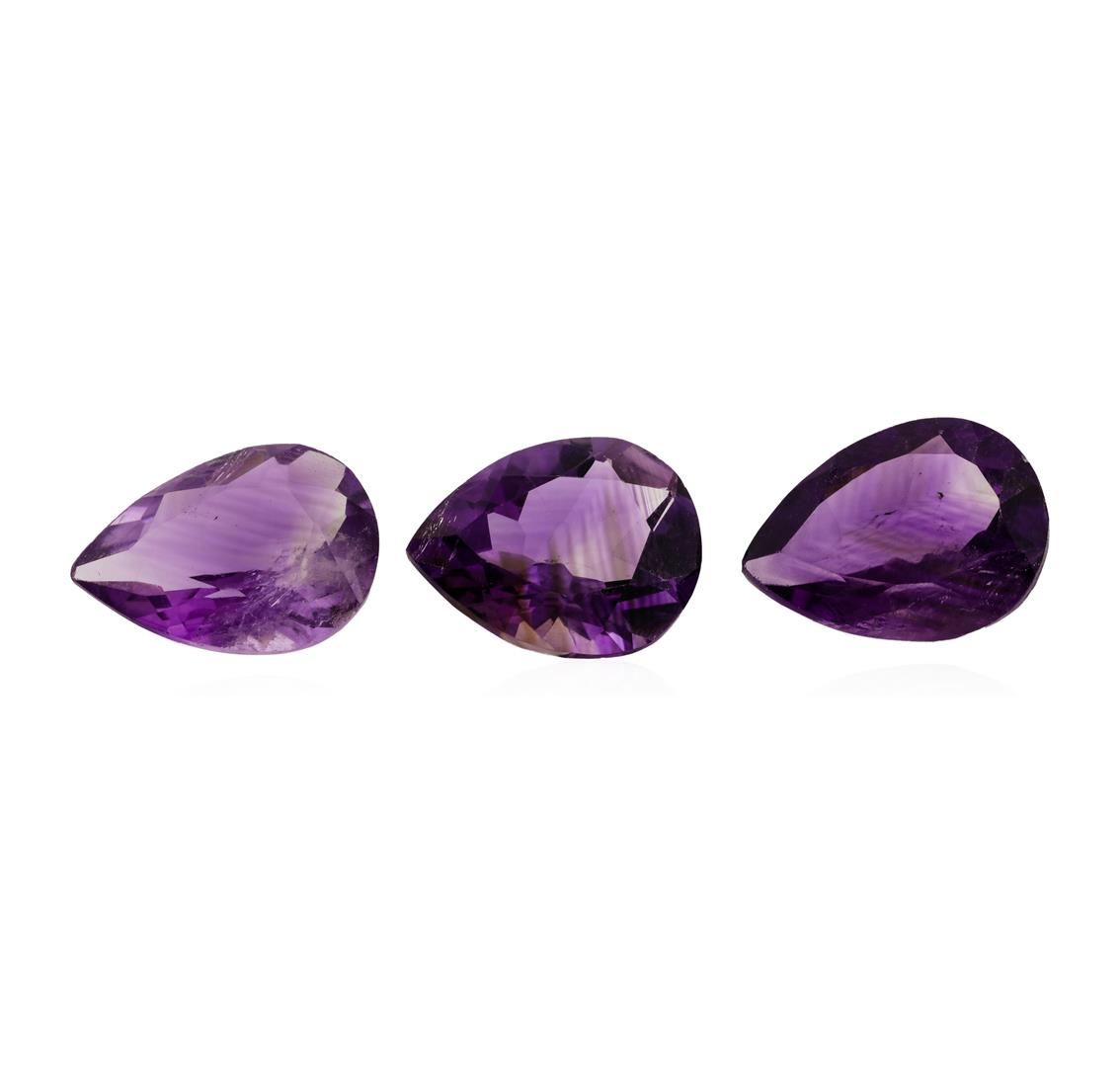 One natural pear cut amethyst parcel of three with an exact weight of 20.18ctw., clarity is slightly included, purple, medium to medium light. Gemological Appraisals Services estimates the retail value at $605.4 GAS Appraised.